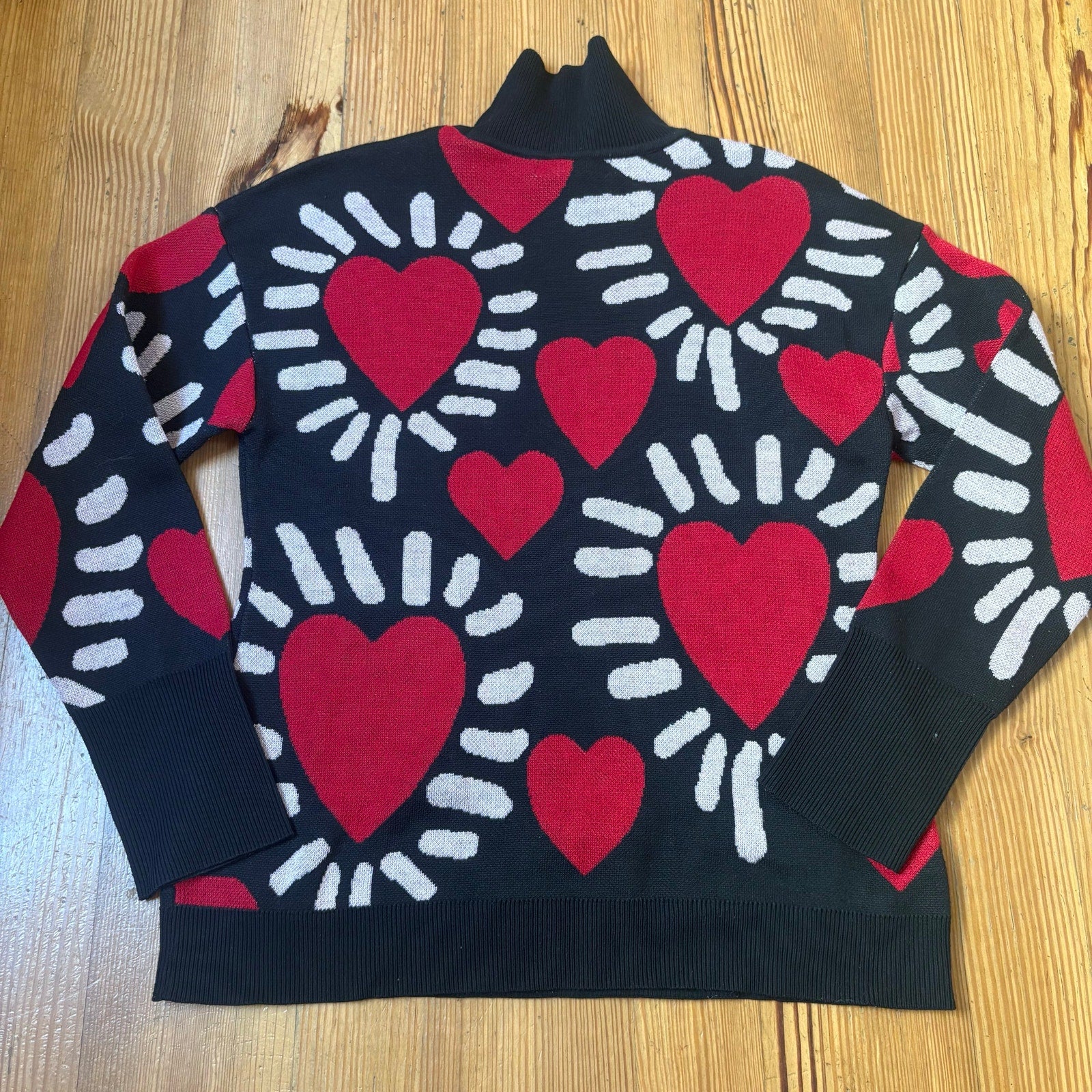 A Love Story black red abstract heart graphic turtleneck sweater SIZE L