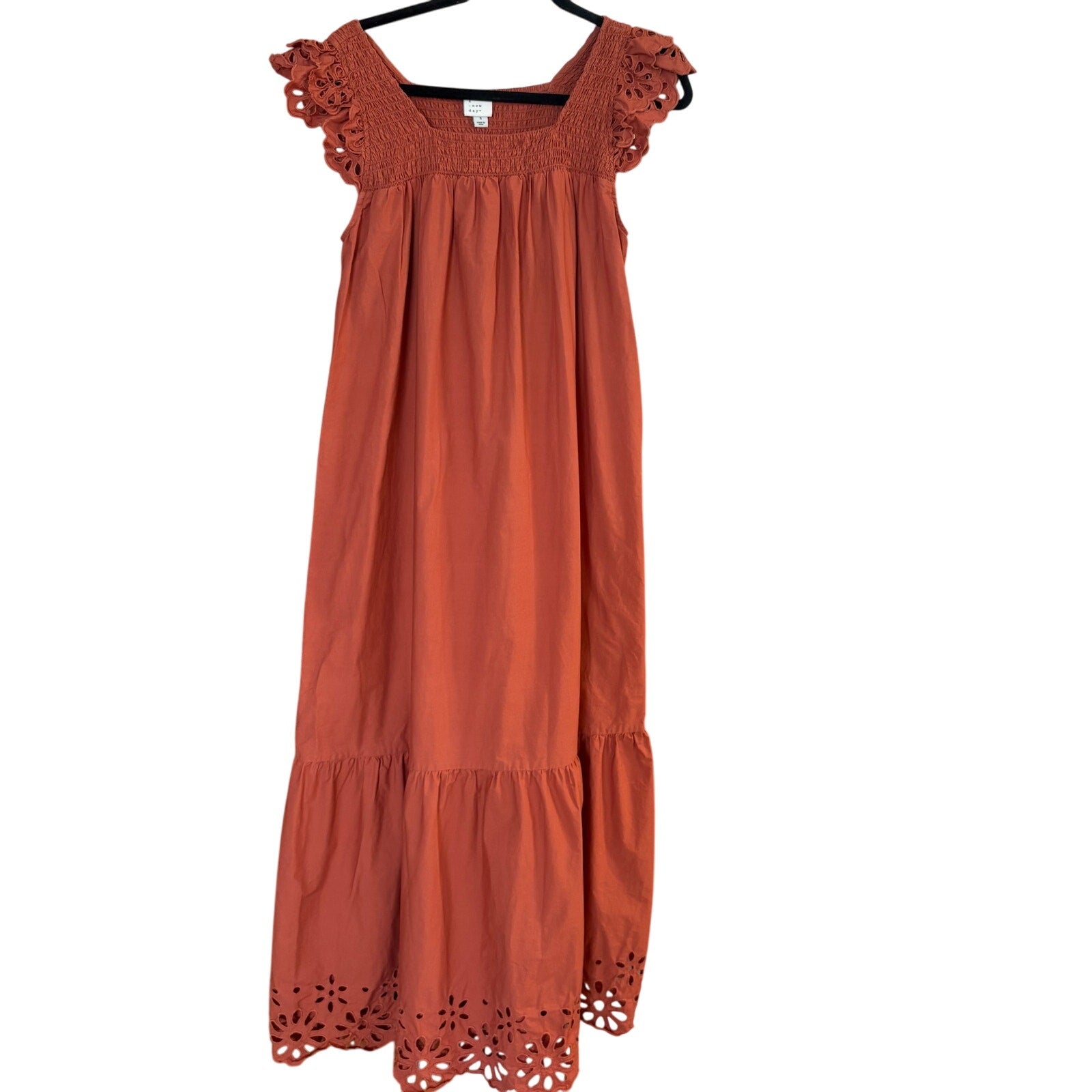 A New Day burnt orange eyelet cap sleeve long tiered maxi dress SIZE S