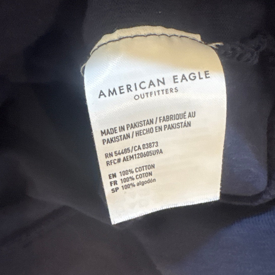 American Eagle blue red striped pullover henley rugby hooded sweatshirt SIZE M