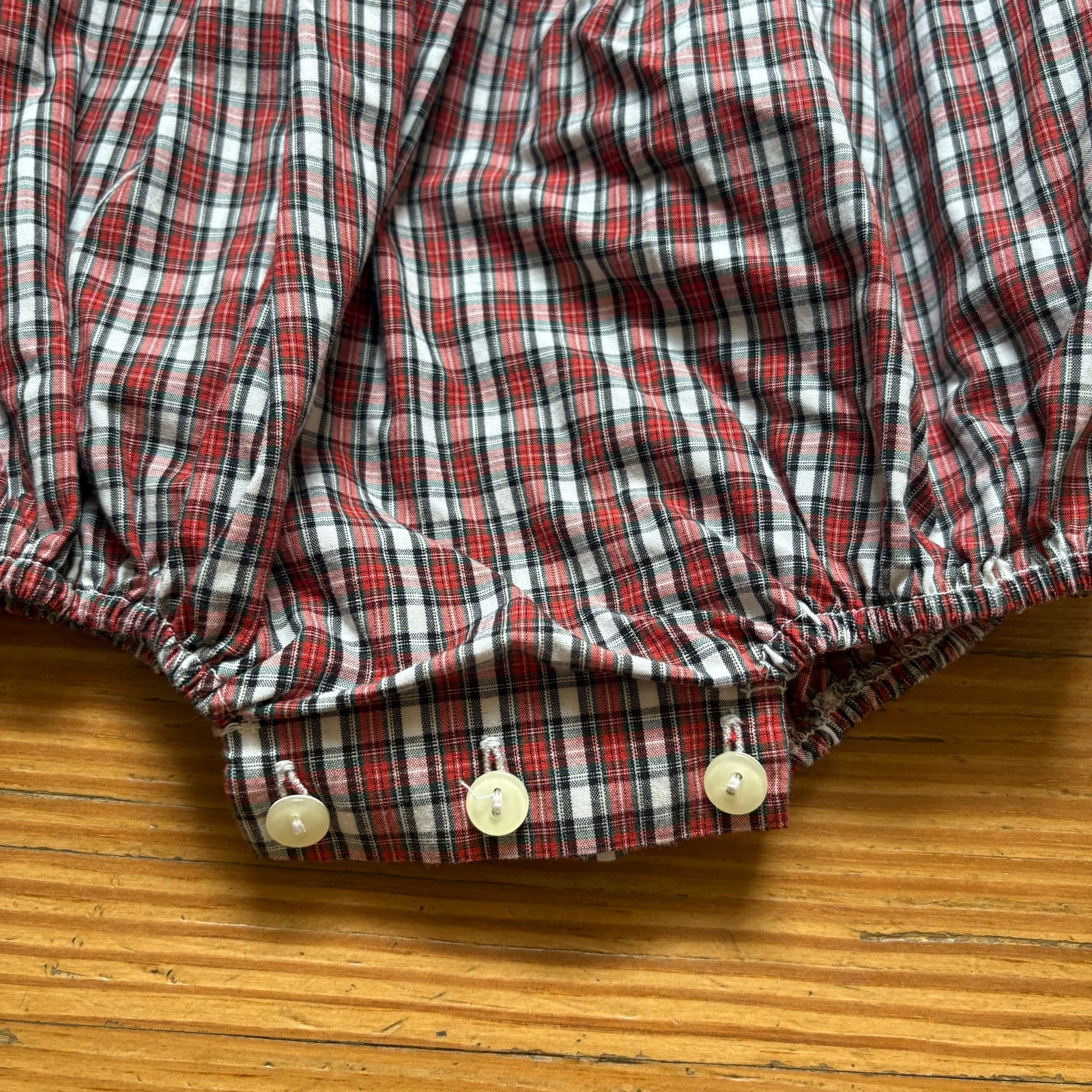Anavini red Christmas tree checkered holiday smocked bubble SIZE 18M
