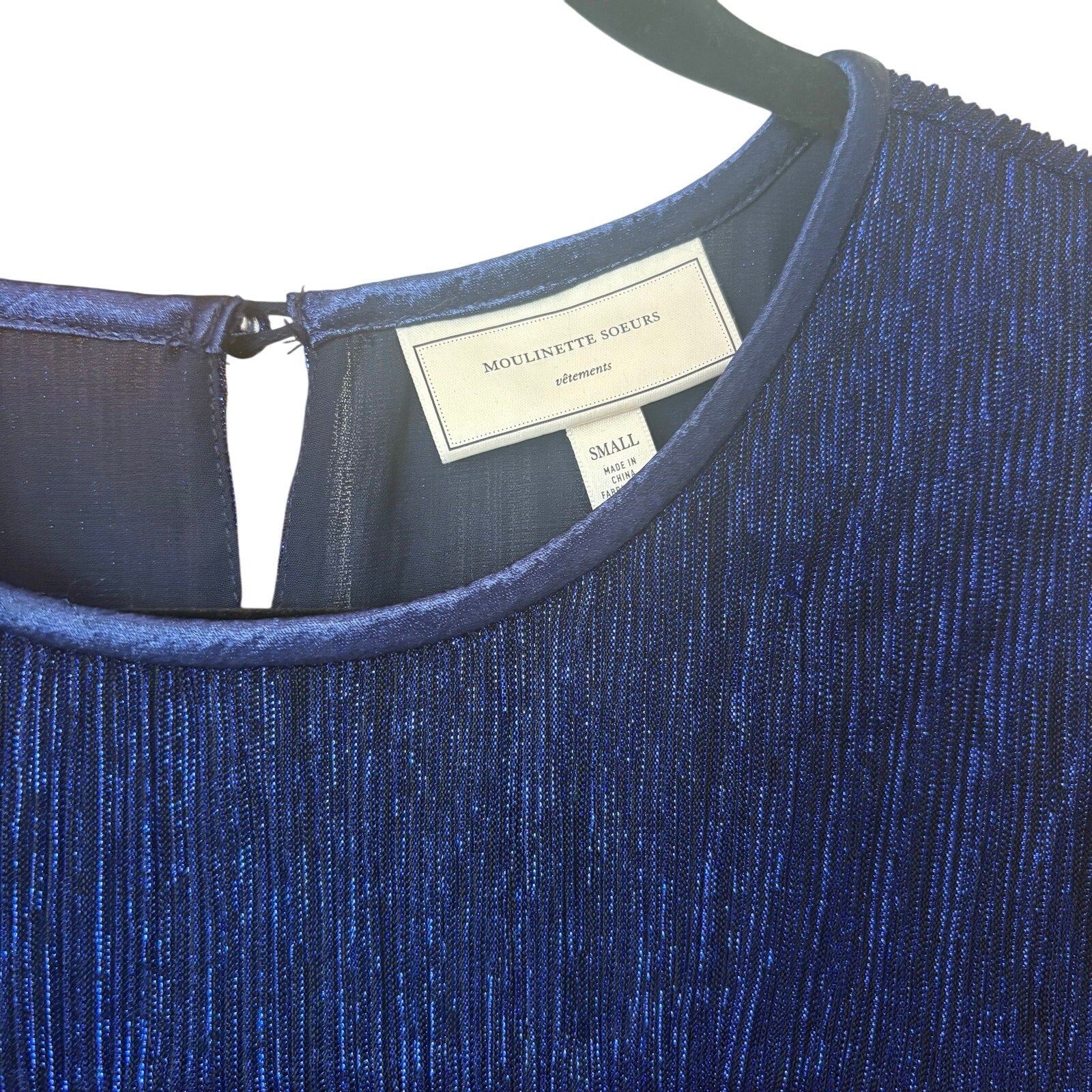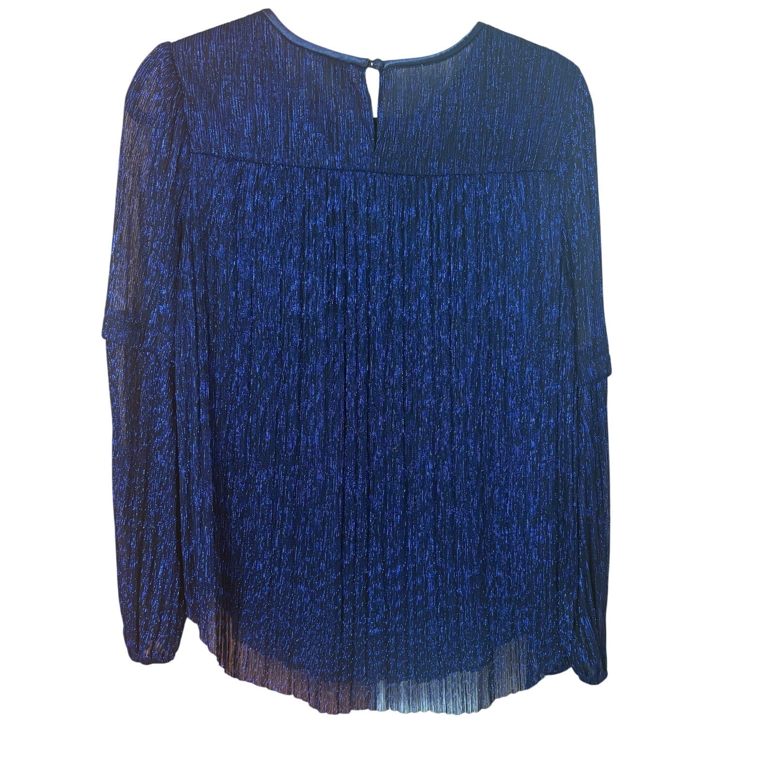 Anthropologie Moulinette Soeurs blue ruffle metallic long sleeve blouse SIZE S