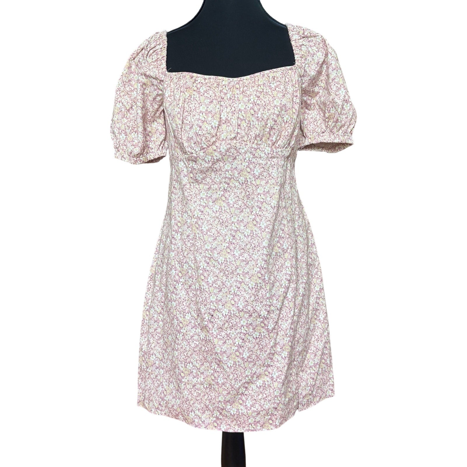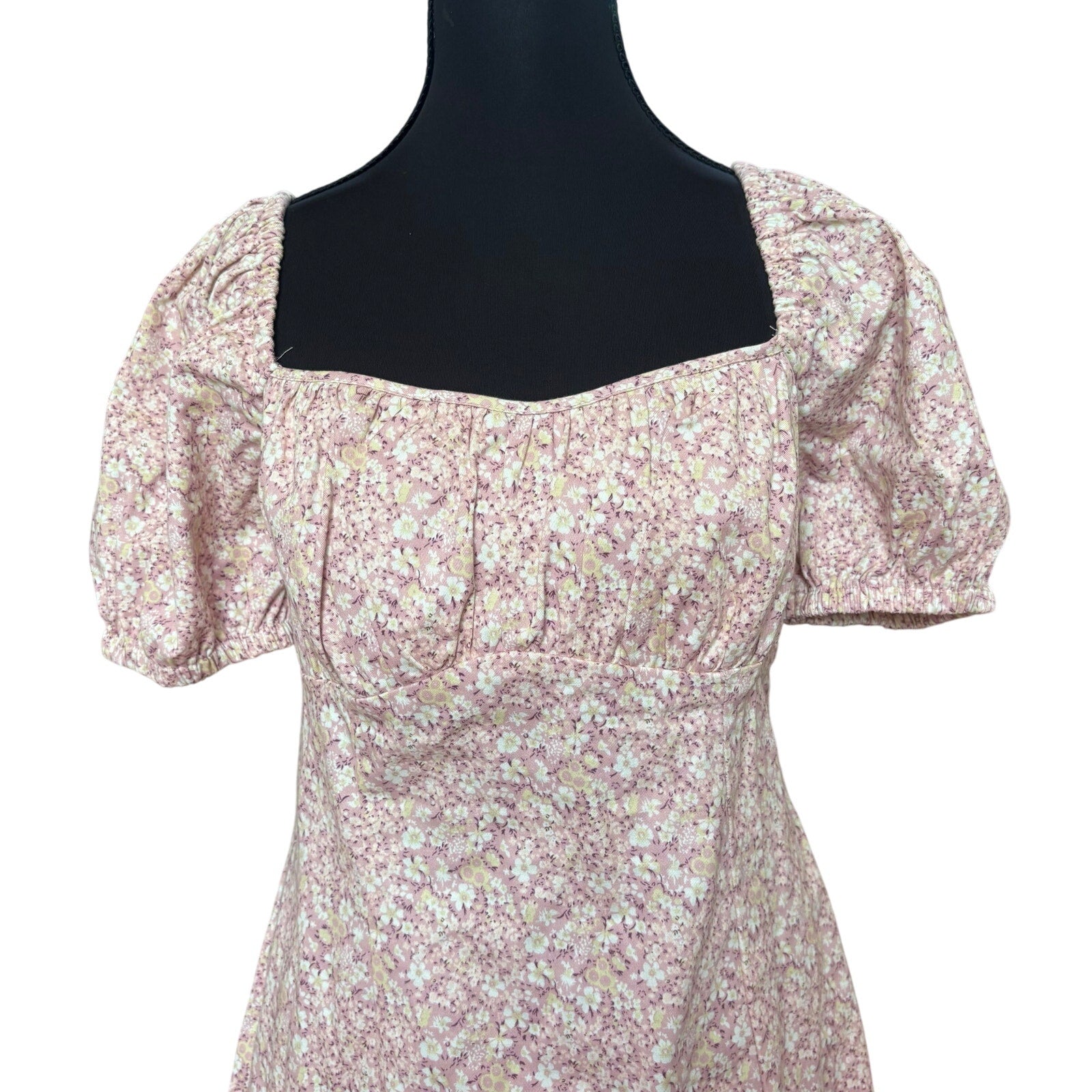 ASTR The Label Wendy floral puff sleeve smocked back mini dress SIZE L