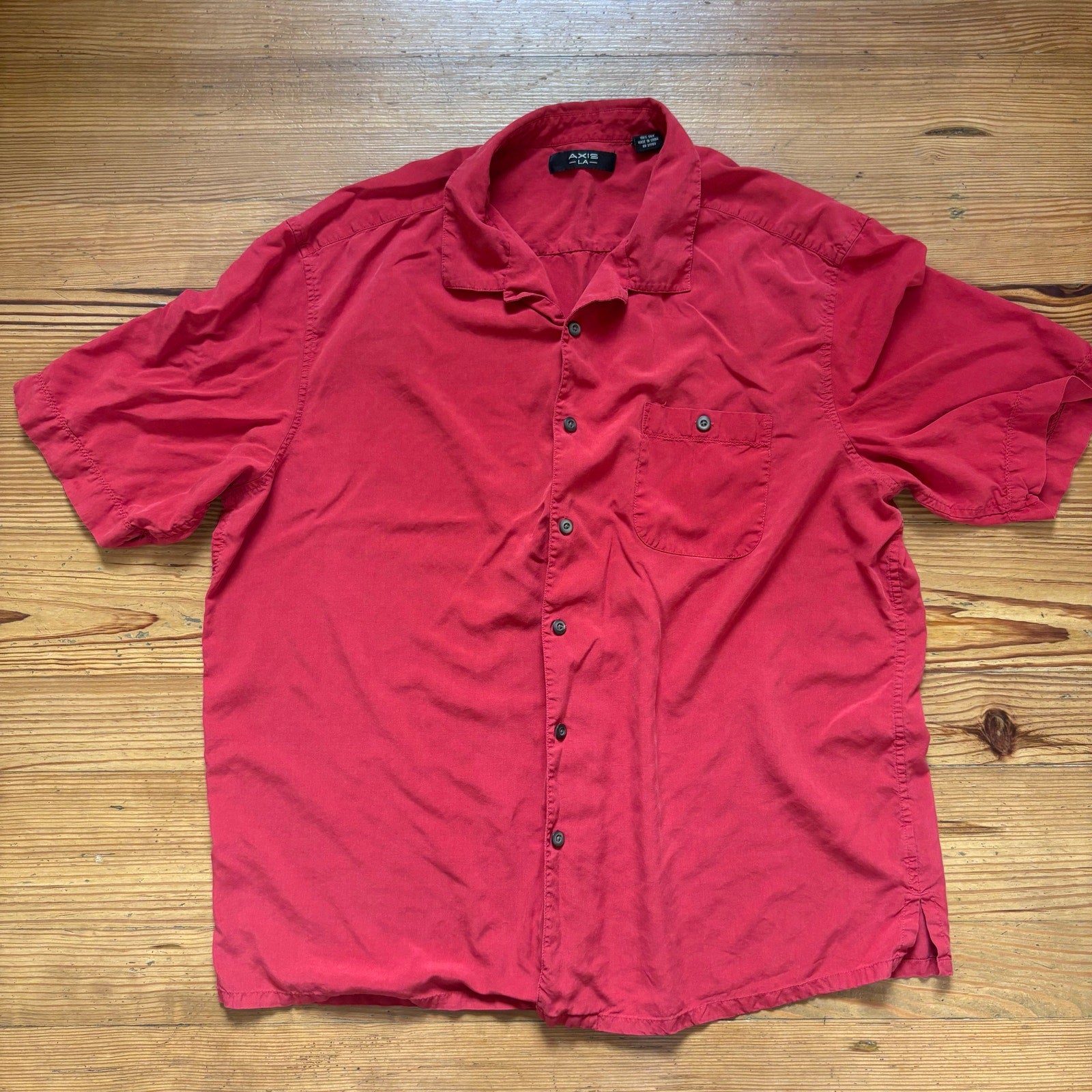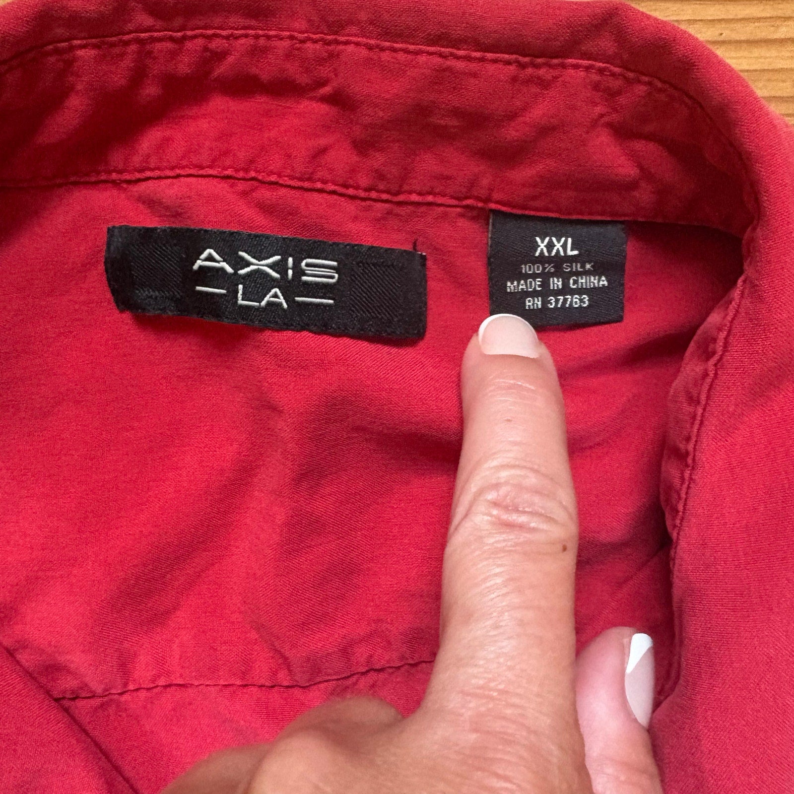 Axis LA red silk short sleeve button up mens shirt SIZE XXL