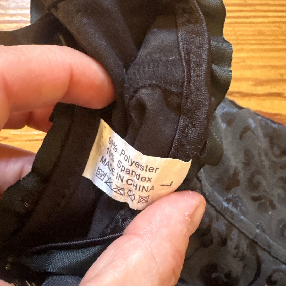 Item: Black satin floral detail zip front lace back corset top SIZE L