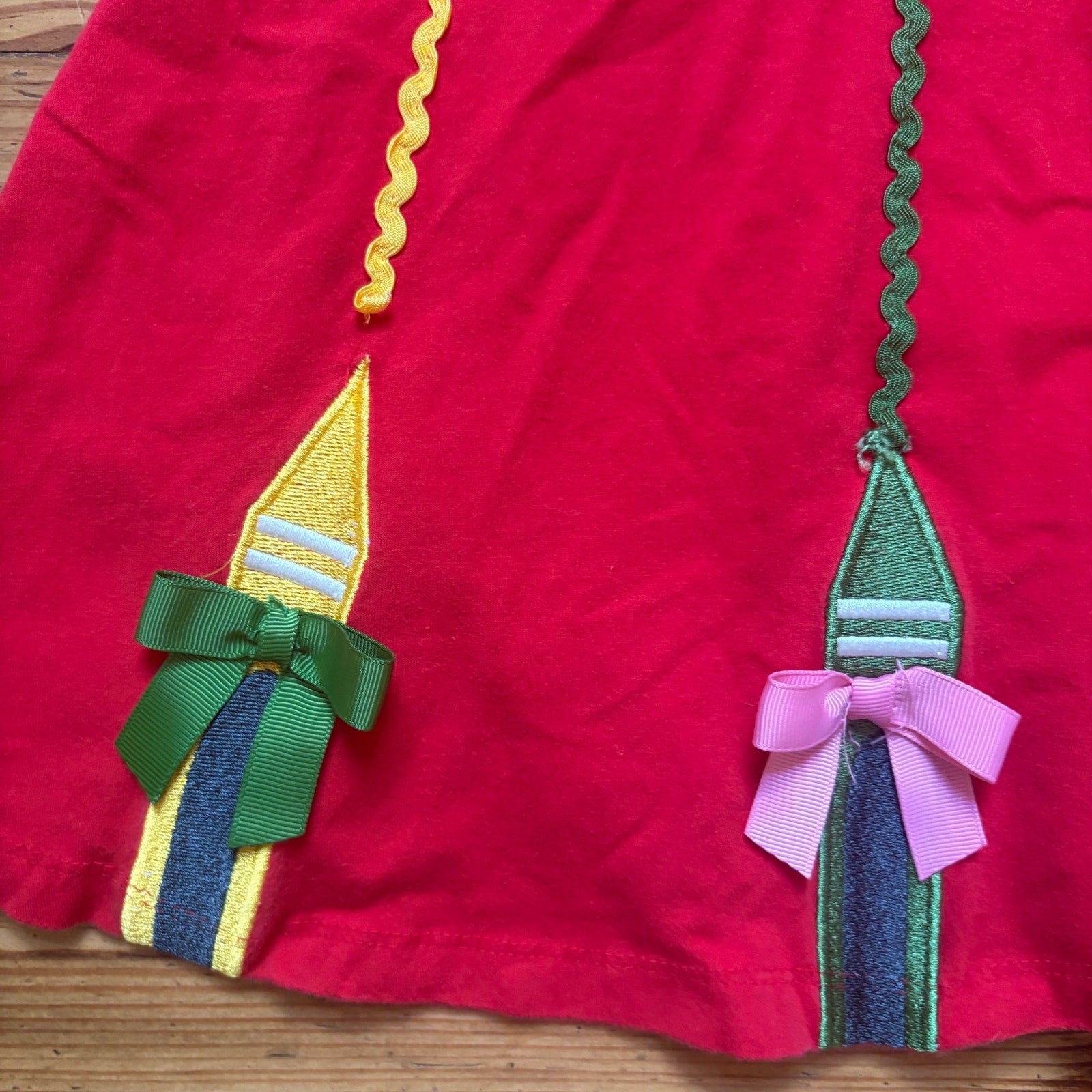 Bonnie Jean red school crayon colorful ribbon long sleeve fit flare dress SIZE 6