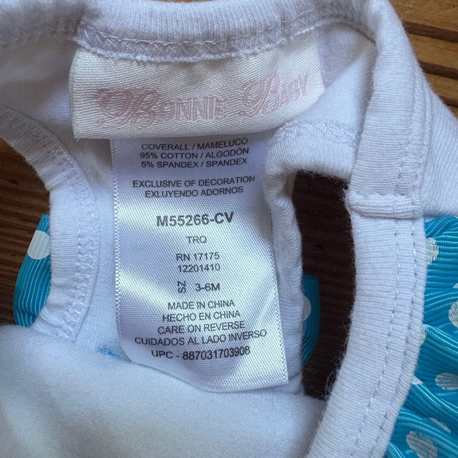 Bonnie Jean white blue polkadot ruffle fish tank baby bodysuit SIZE 3-6M