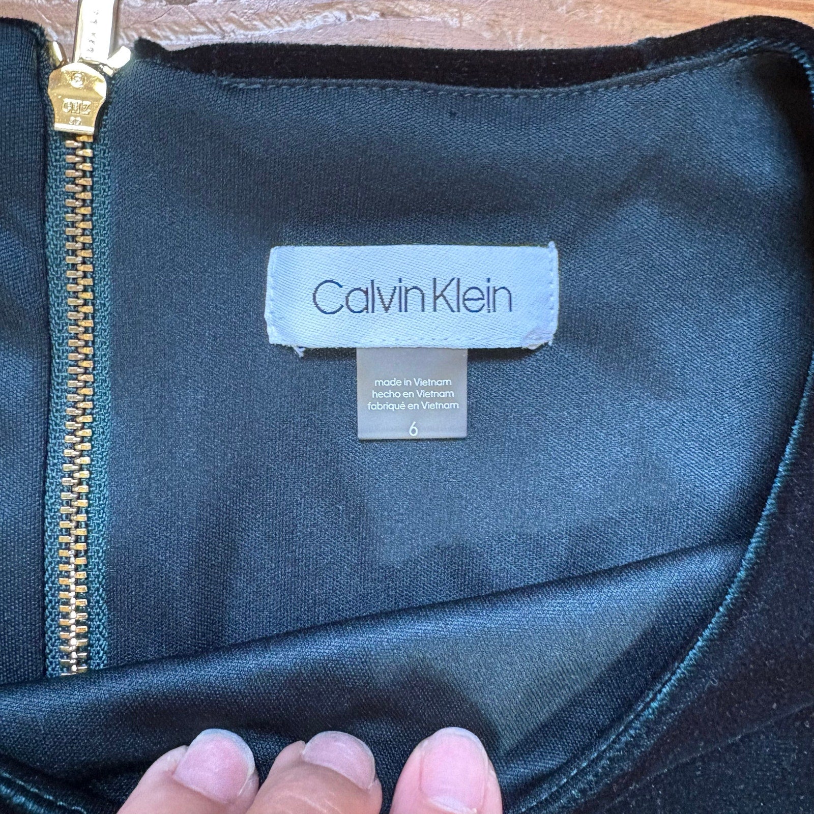 Calvin Klein dark green velvet bell quarter sleeve midi dress SIZE 6