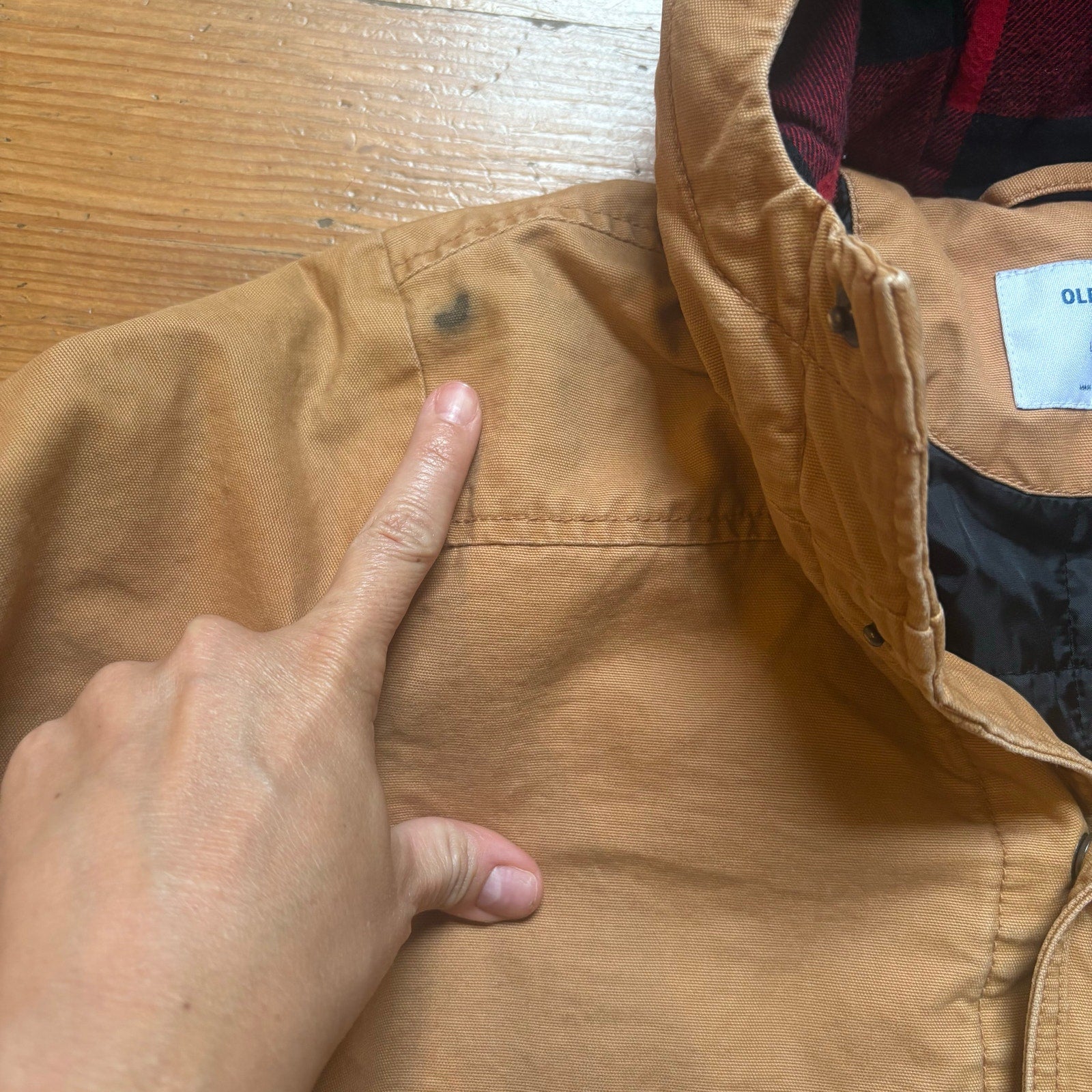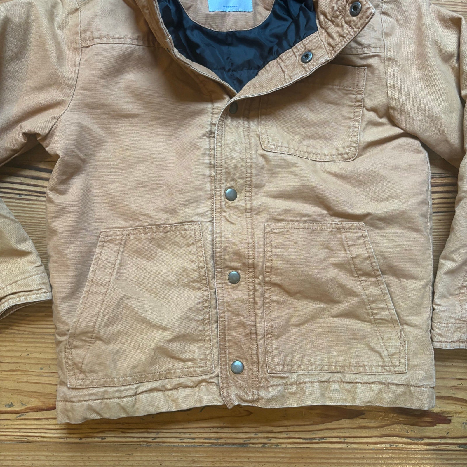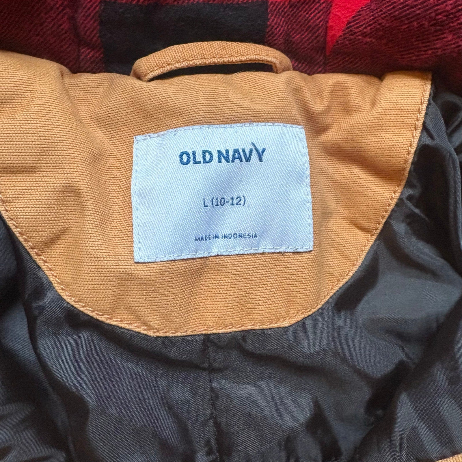 Item:Carter’s beige canvas cargo buffalo plaid lined hooded boy coat SIZE L