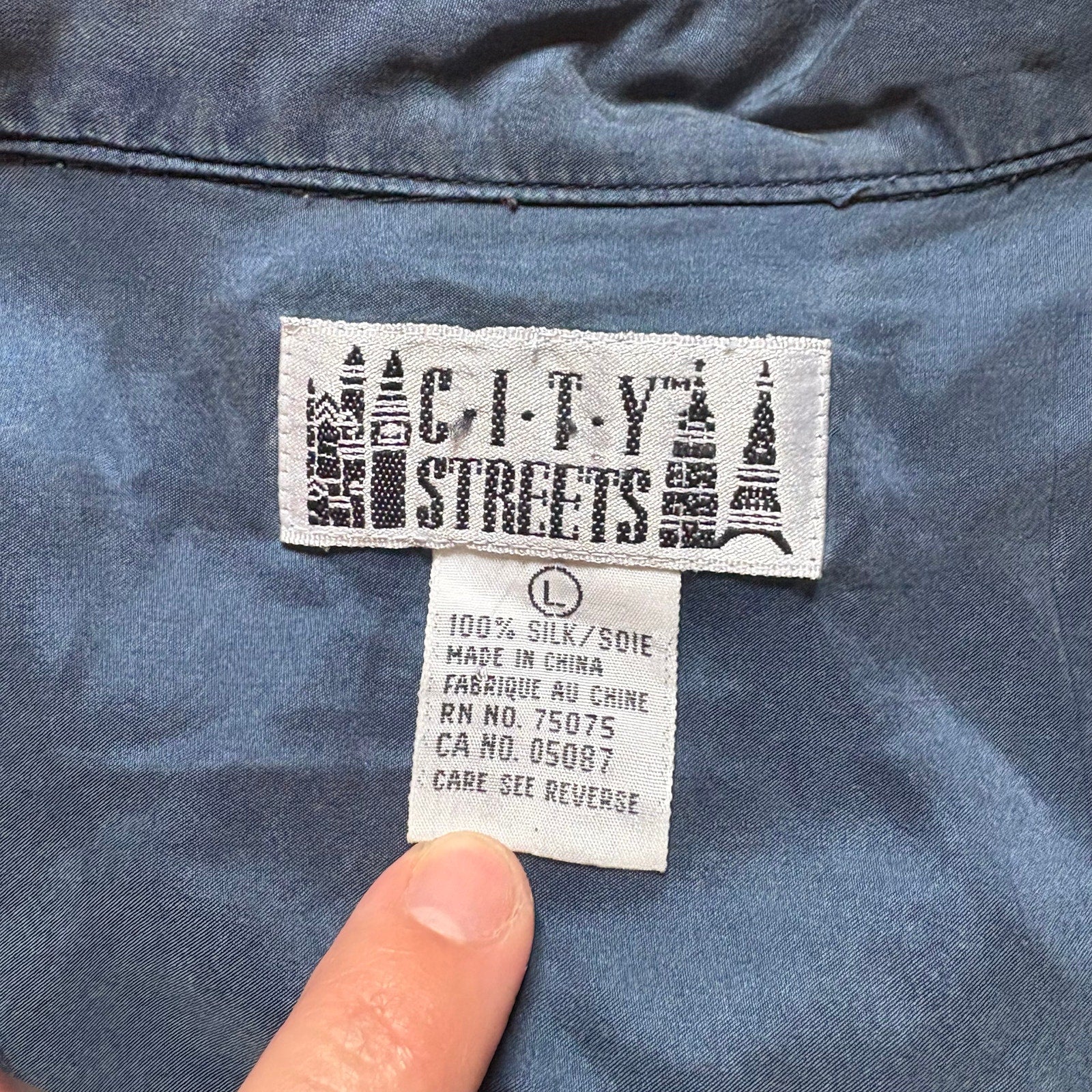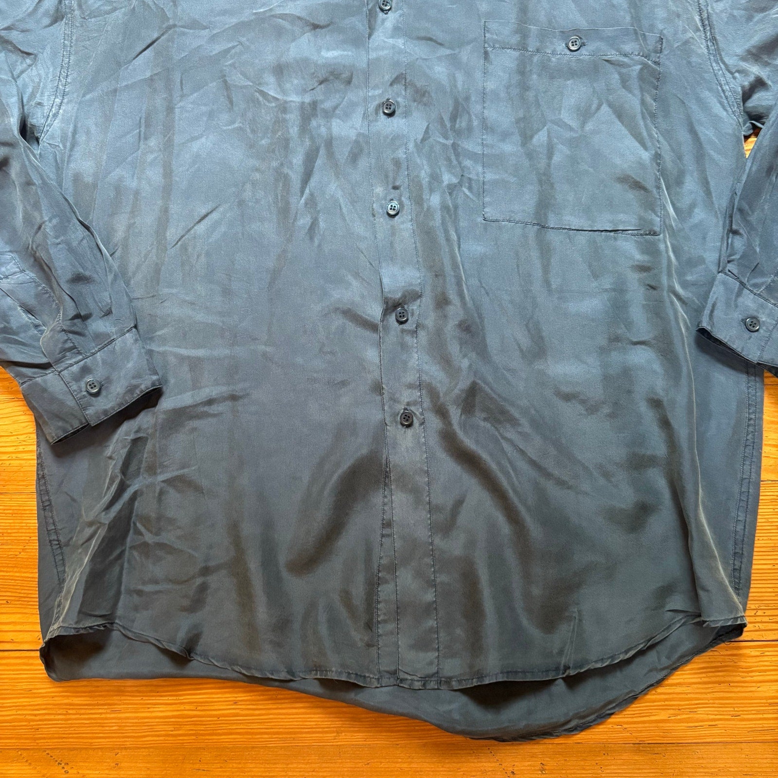 City Streets vintage blue silk long sleeve mens button up shirt SIZE L