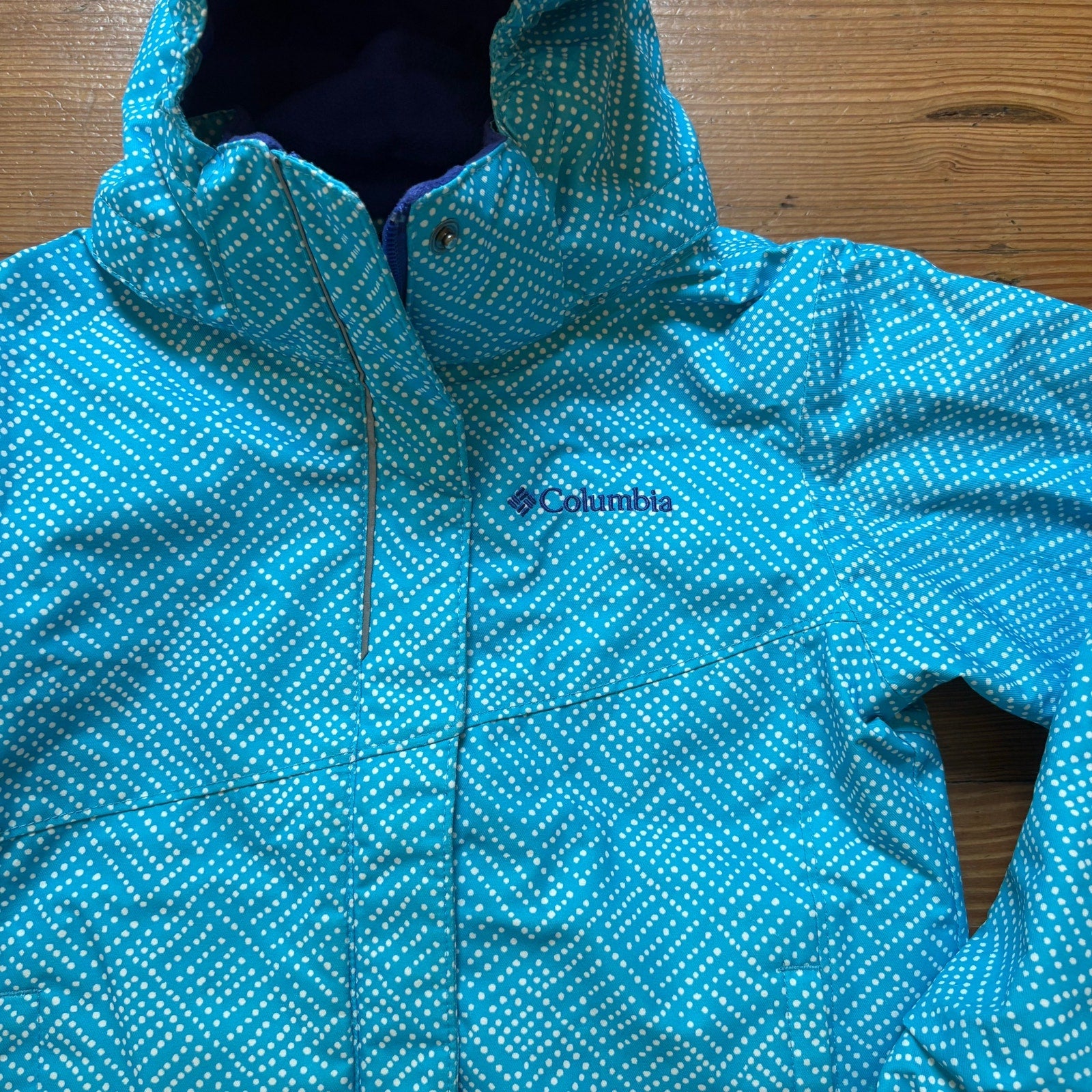 Columbia light blue white dotted full zip hooded girls coat SIZE XS