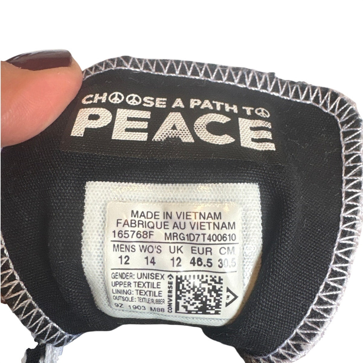 Item: Converse All Star Seek Peace white black high top unisex sneakers SIZE M12 W14