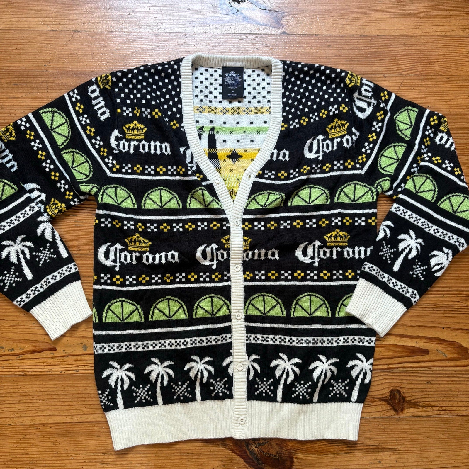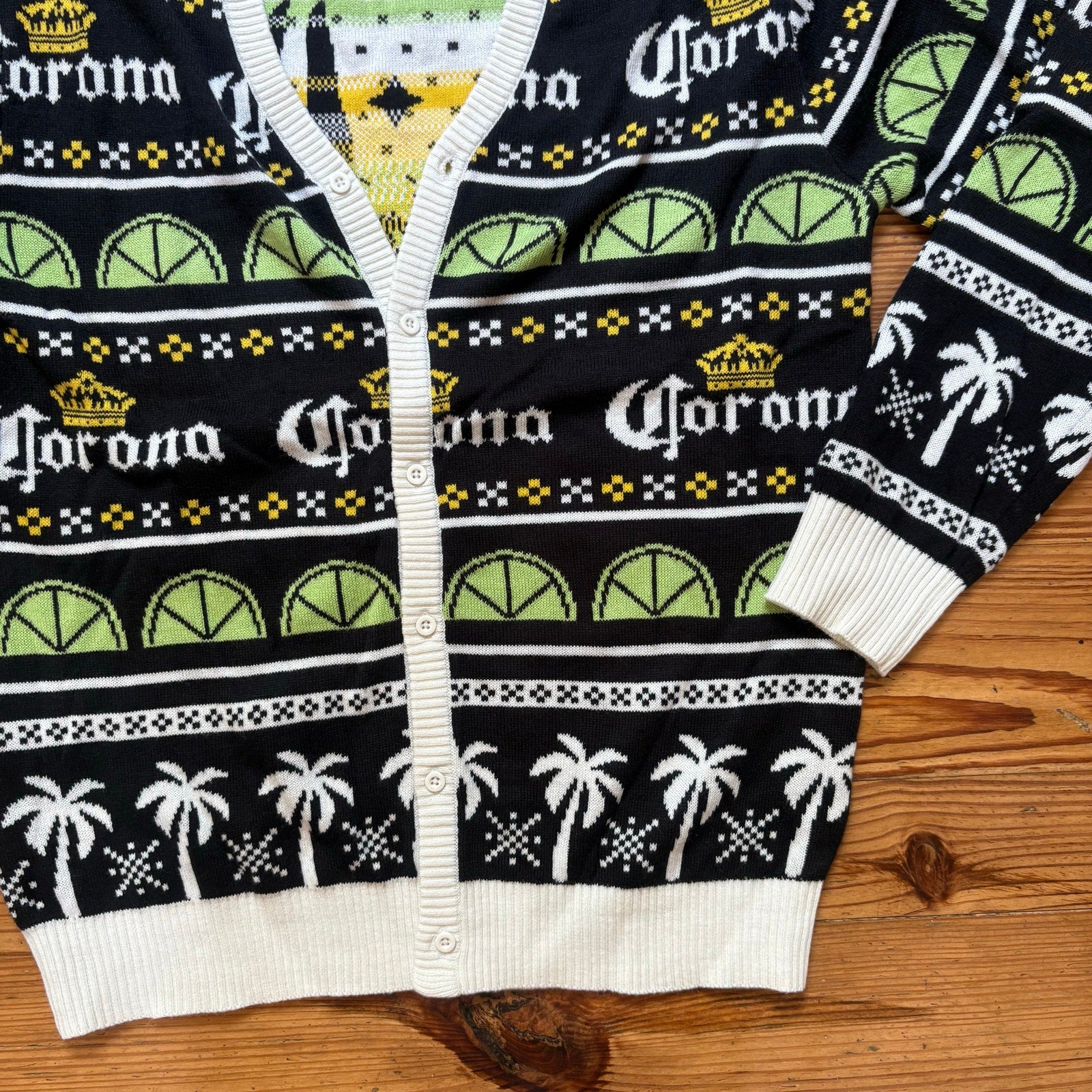 Corona Christmas Feliz Navidad black white varsity cardigan sweater SIZE M