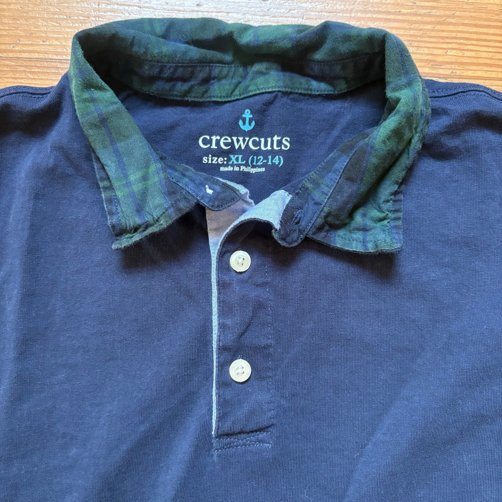 Crewcuts dark blue green plaid collar rugby long sleeve henley short SIZE XL