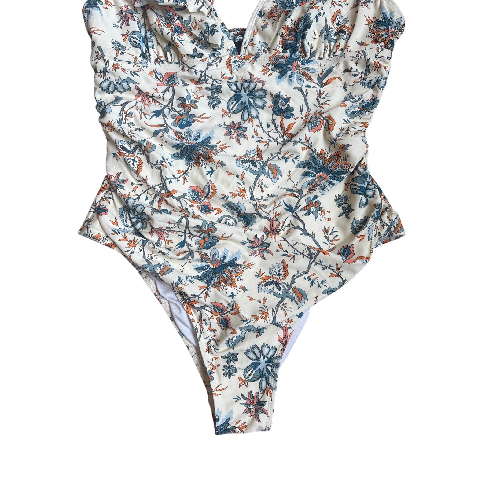 Item: Cupshe beige blue floral plunge open back cheeky one piece swimsuit SIZE M