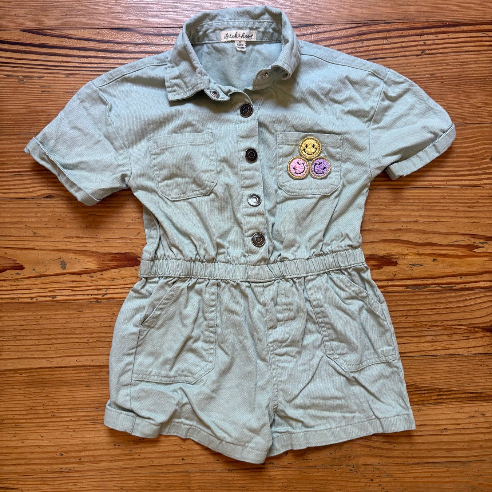 Derek Heart mint green smily face patch short sleeve girls romper SIZE 6