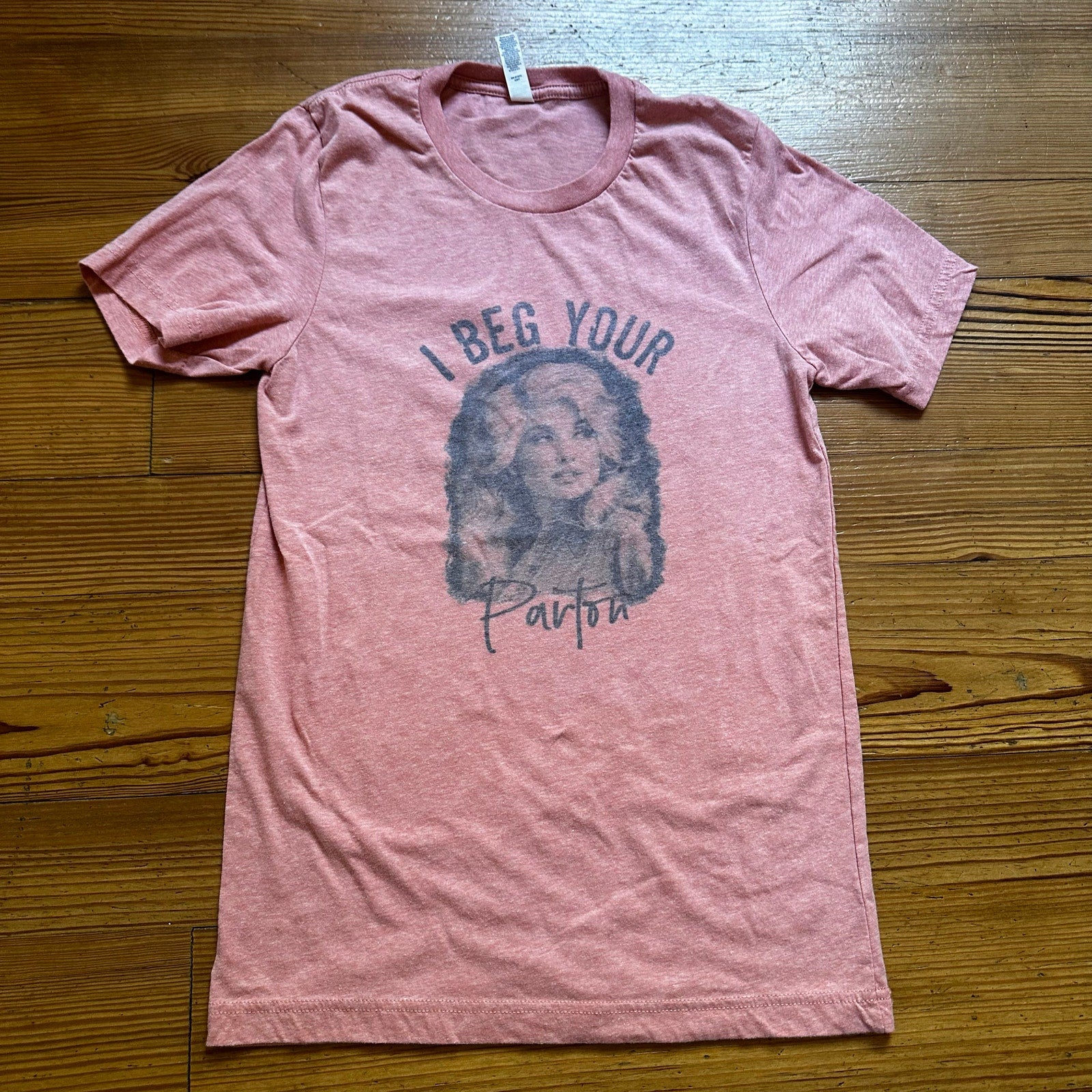 Dolly Parton pink Beg Your Parton short sleeve graphic tshirt SIZE S