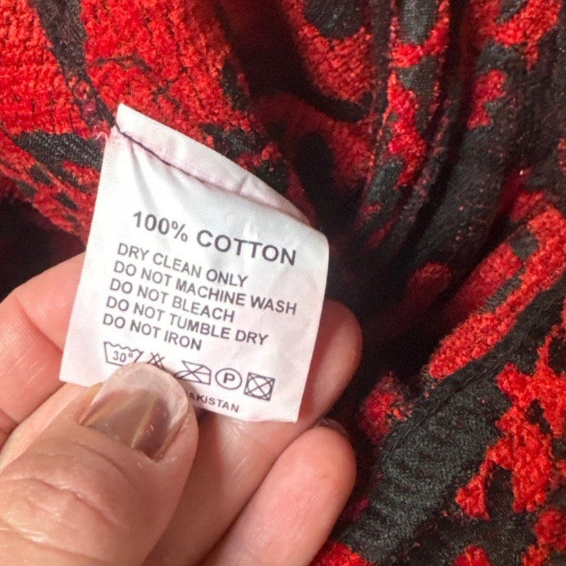 Dracula Clothing red brocade office snap bottom boot cut pants SIZE 38