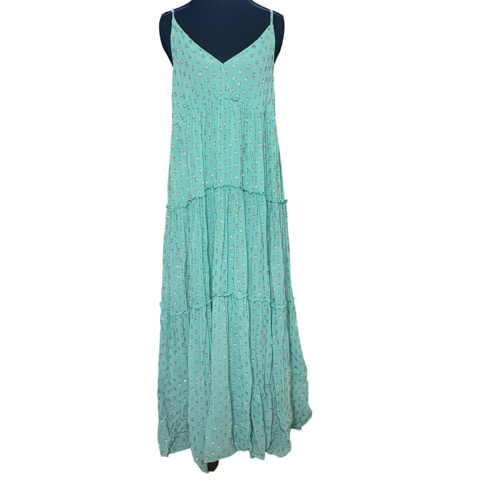 En Creme mint green gold polka dot plunge neckline maxi dress SIZE M