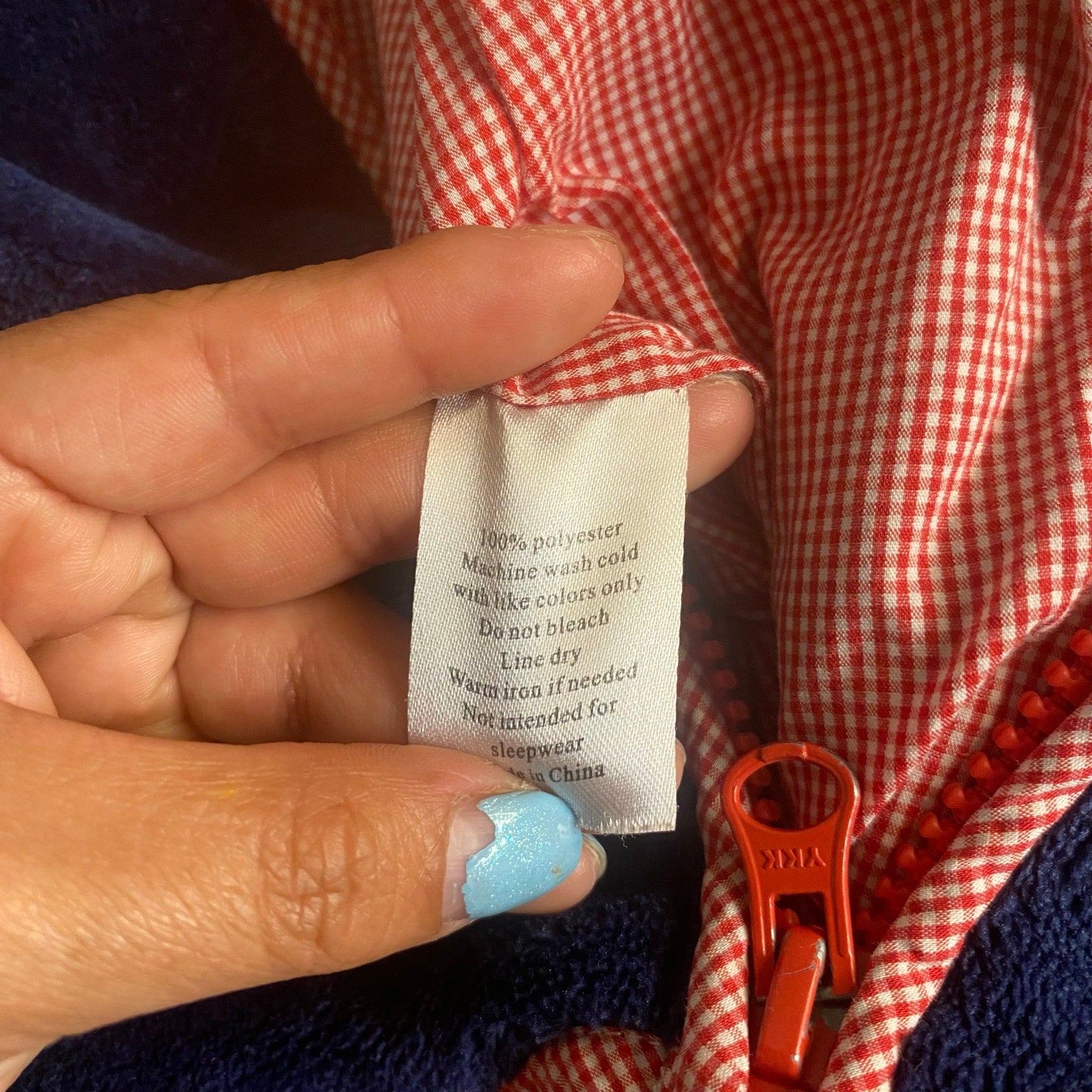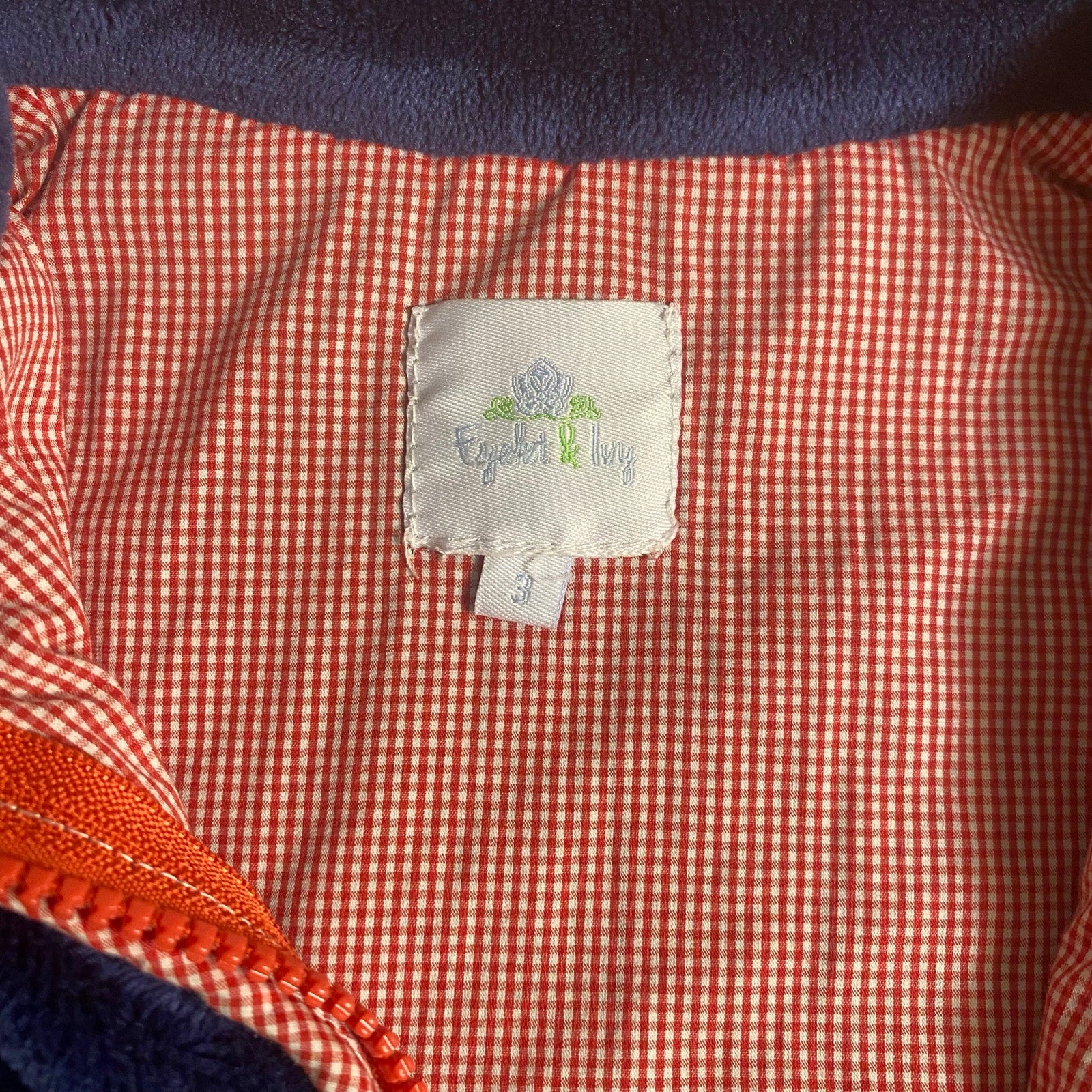 Item: Eyelet & Ivy dark blue fleece fuzzy red check lined full zip vest SIZE 3