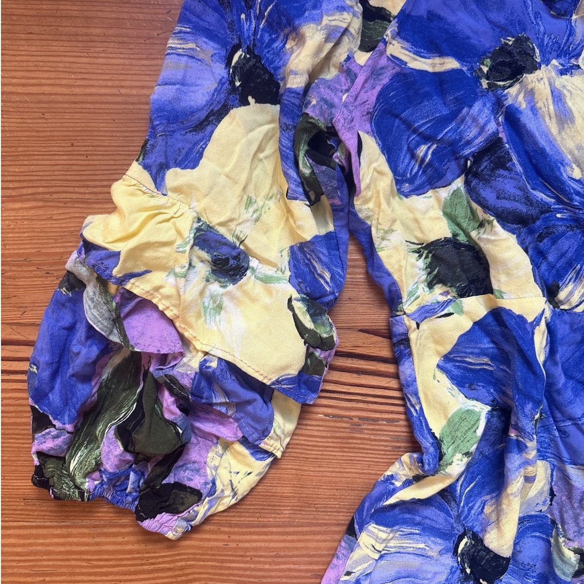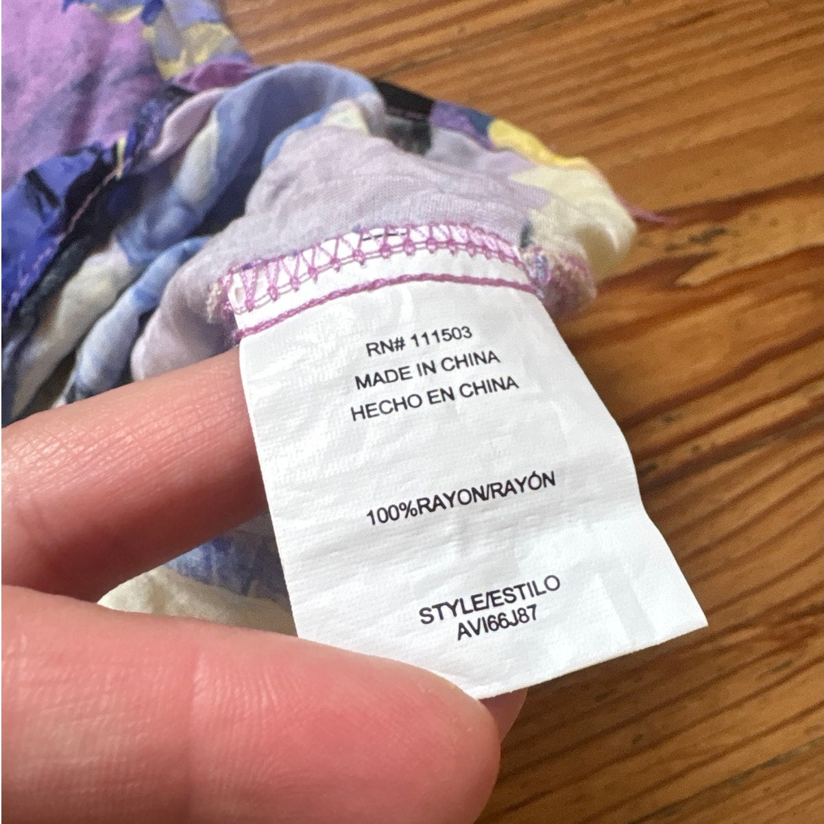 Fig & Flower purple floral ruffle quarter sleeve womens tunic blouse SIZE XL