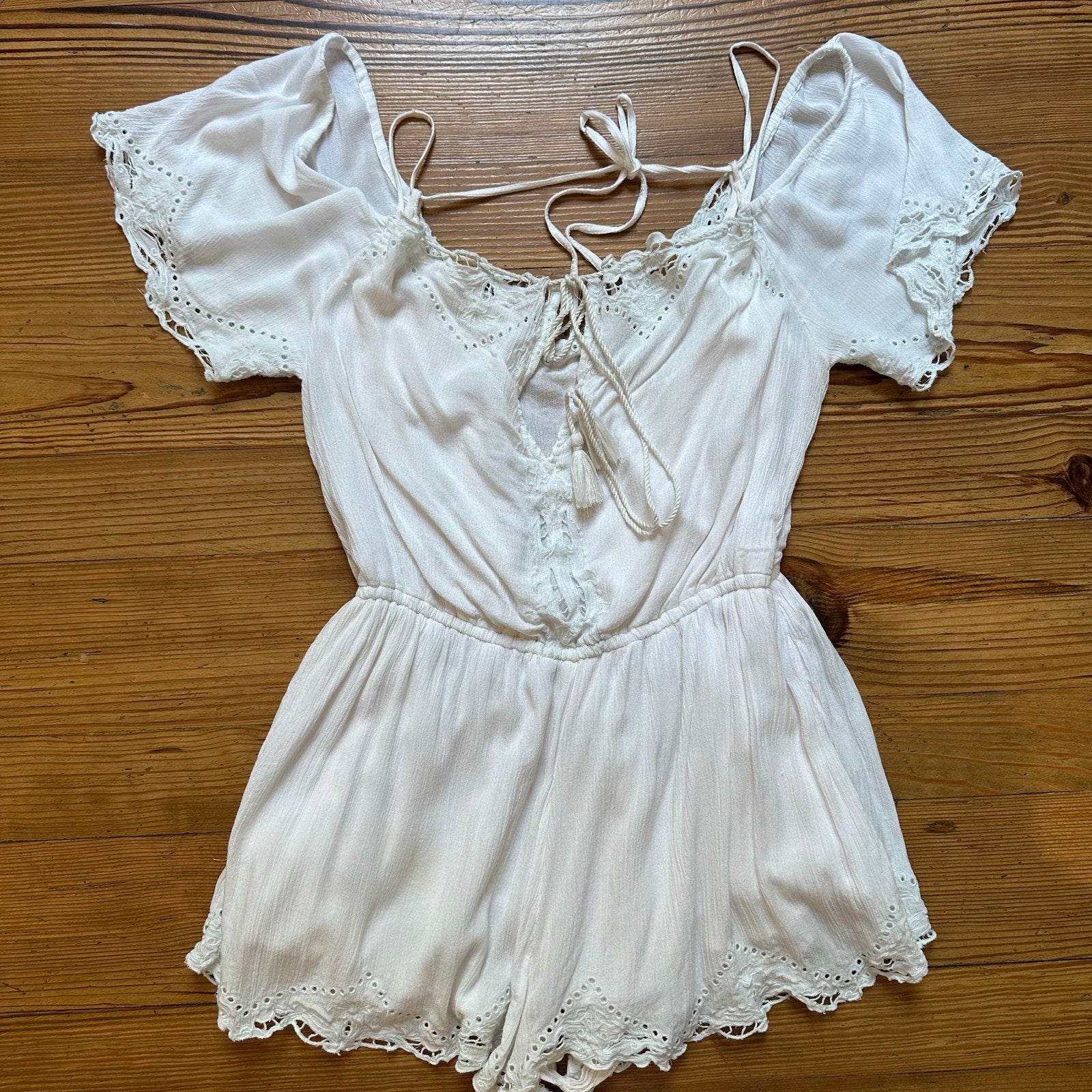 Free People white lace romantic off shoulder eyelet romper SIZE M