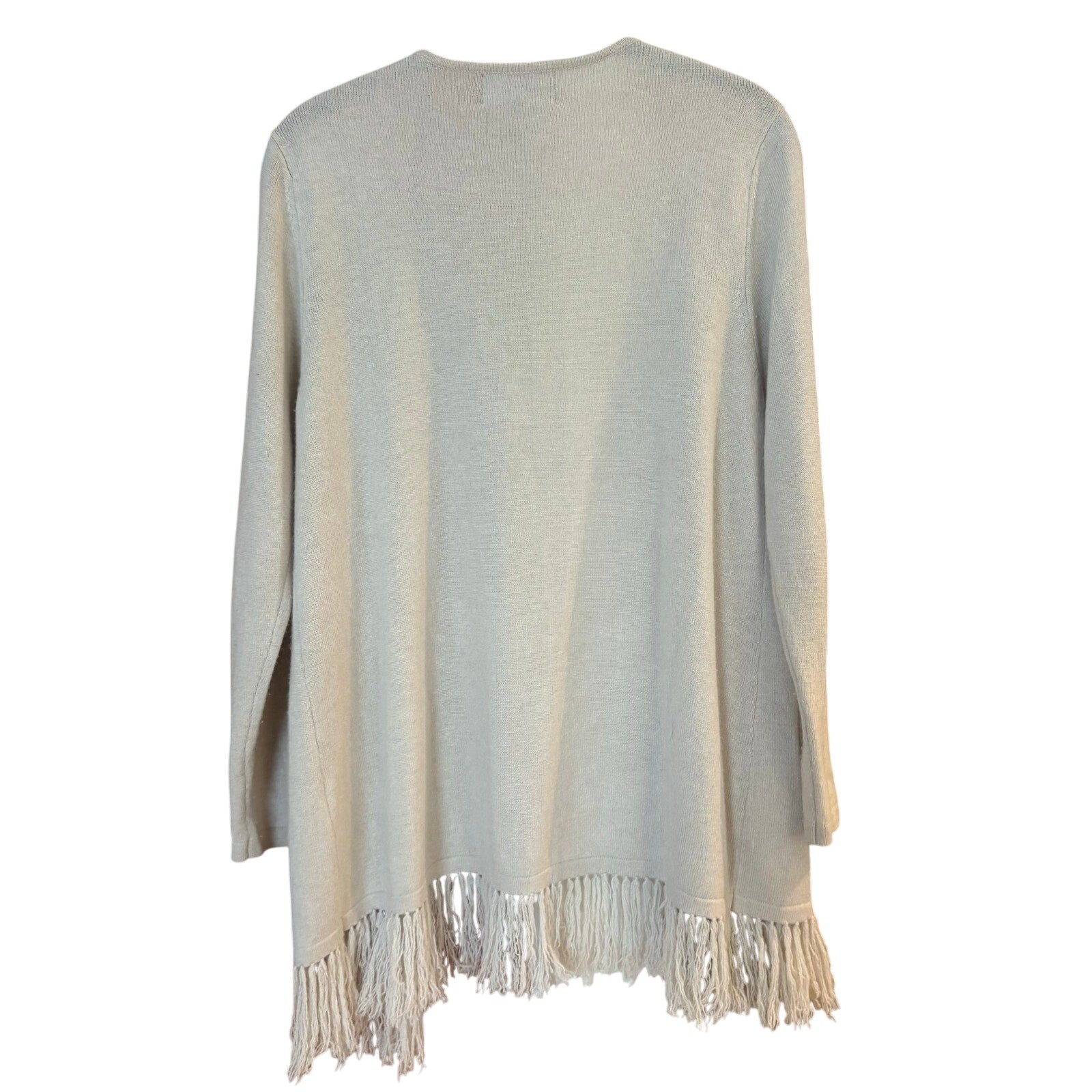 French Curve cashmere beige long sleeve fringe bottom cardigan SIZE M