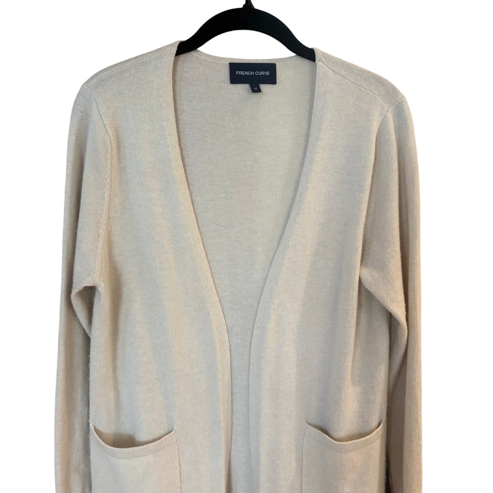 Item French Curve cashmere beige long sleeve fringe bottom cardigan SIZE M