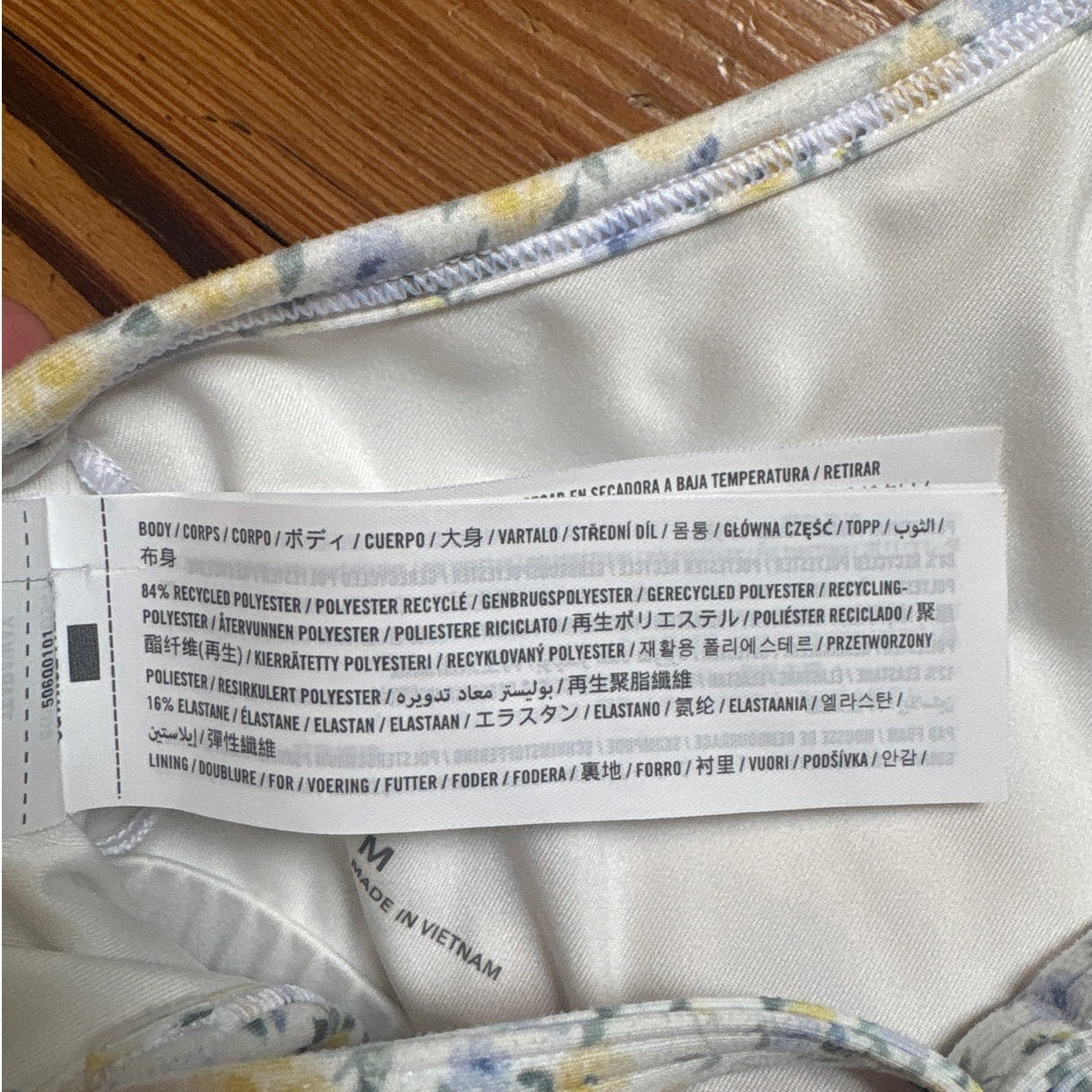 Color: white with blue and yellow florals