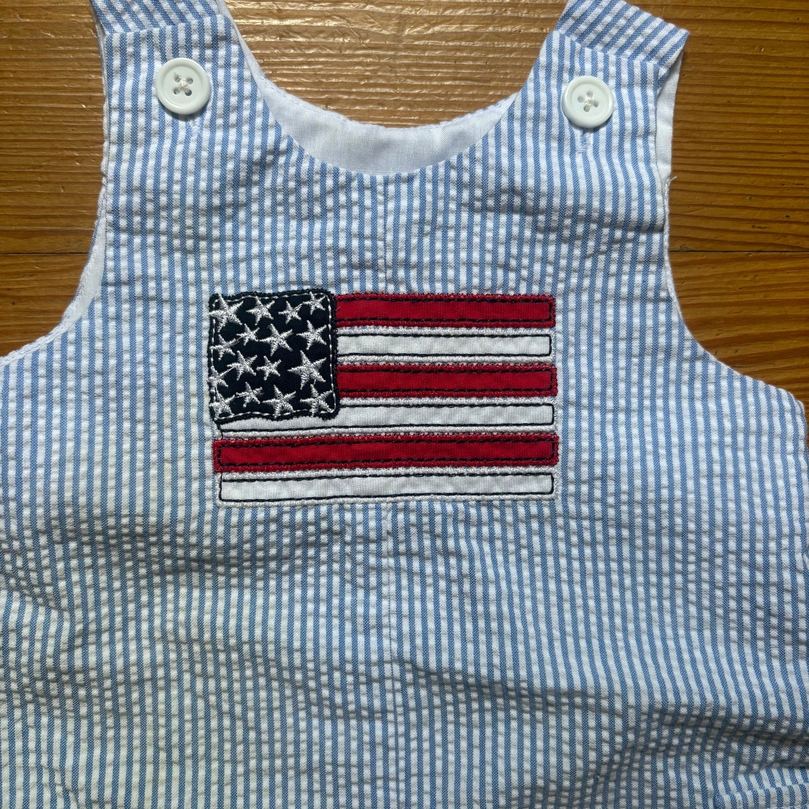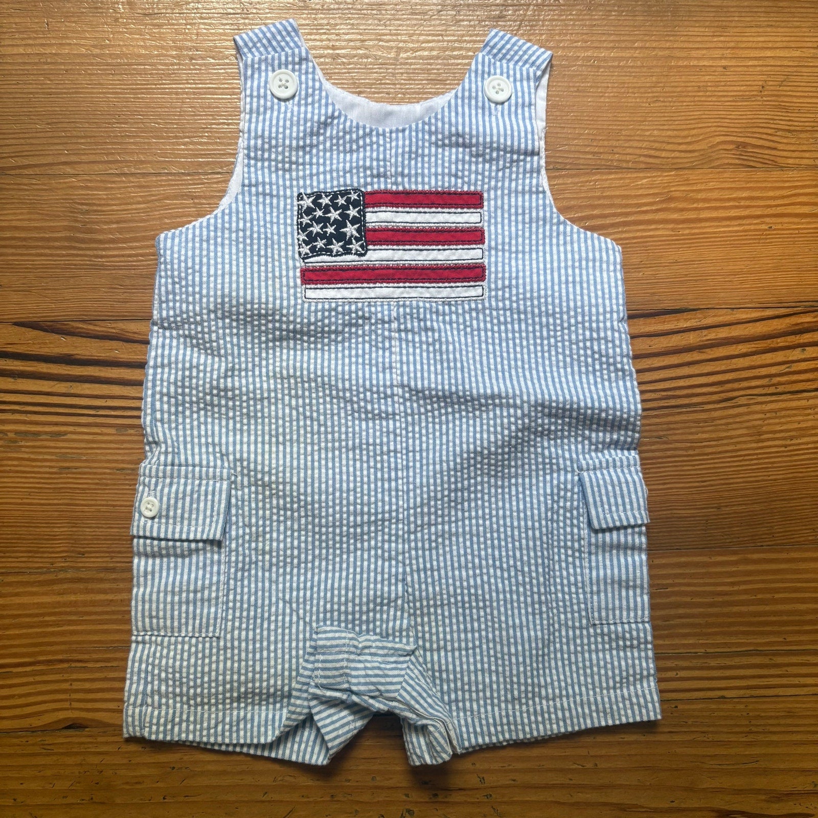 Good Lad blue white seersucker American flag baby overalls SIZE 3-6M
