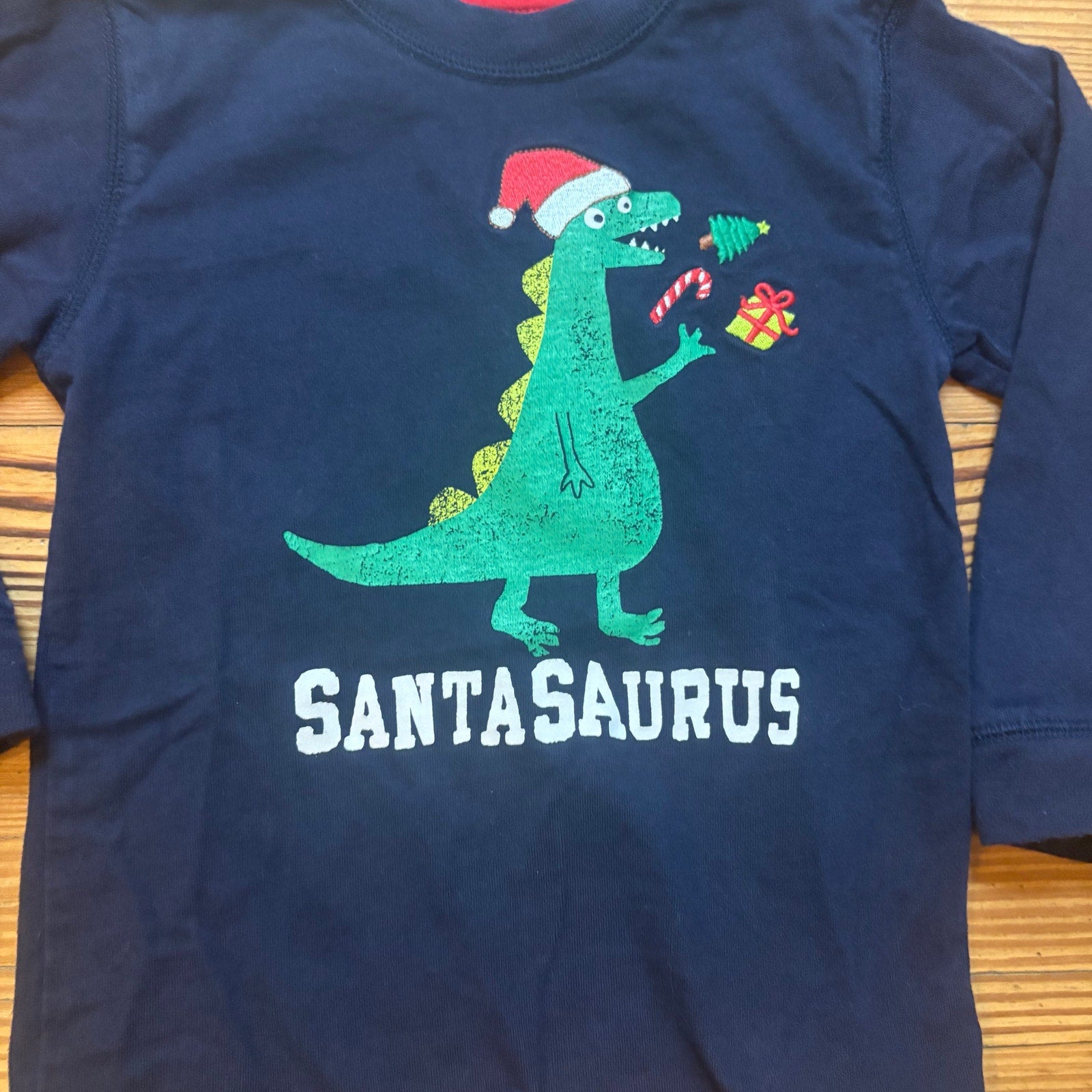 Gymboree dark blue Christmas Santa dinosaur long sleeve shirt SIZE 3T