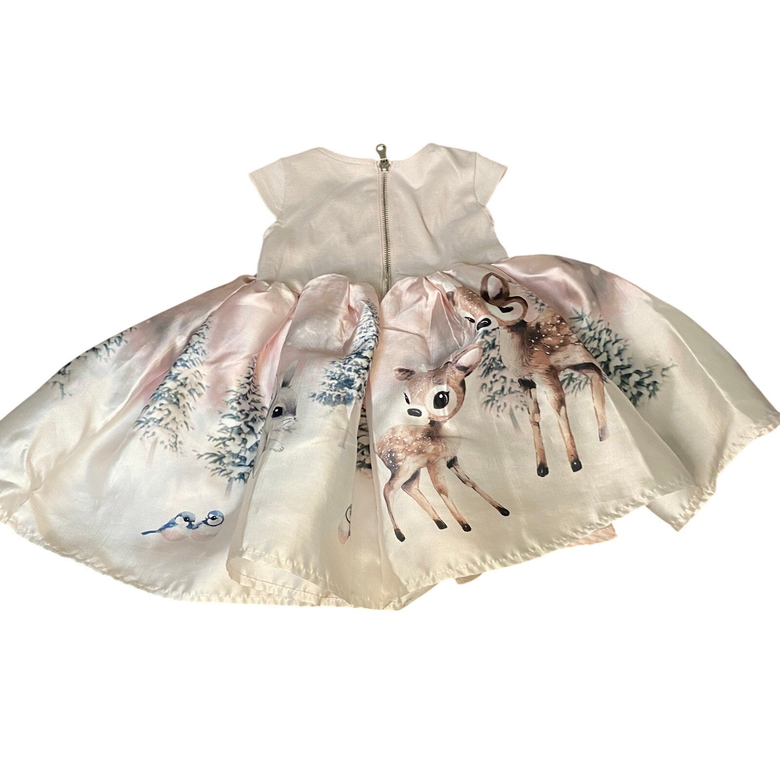 H&M pink white snowy woodland deer Christmas sleeveless flare dress SIZE 2T