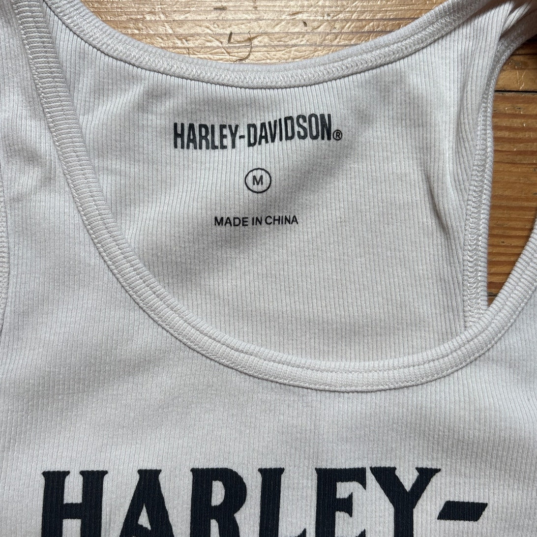 Item: Harley Davidson white ribbed black lettering tank top SIZE S