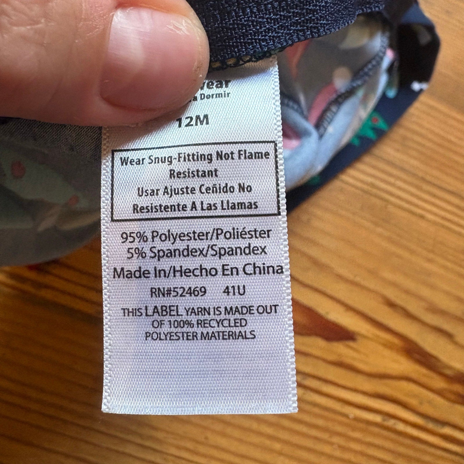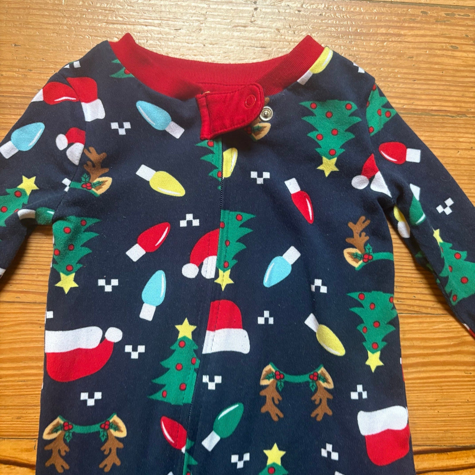 Holiday Time dark blue Christmas long sleeve pant zip bodysuit pajamas SIZE 12M