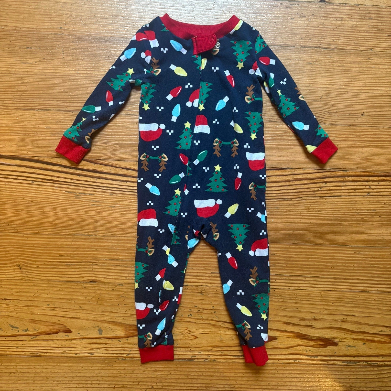 Item: Holiday Time dark blue Christmas long sleeve pant zip bodysuit pajamas