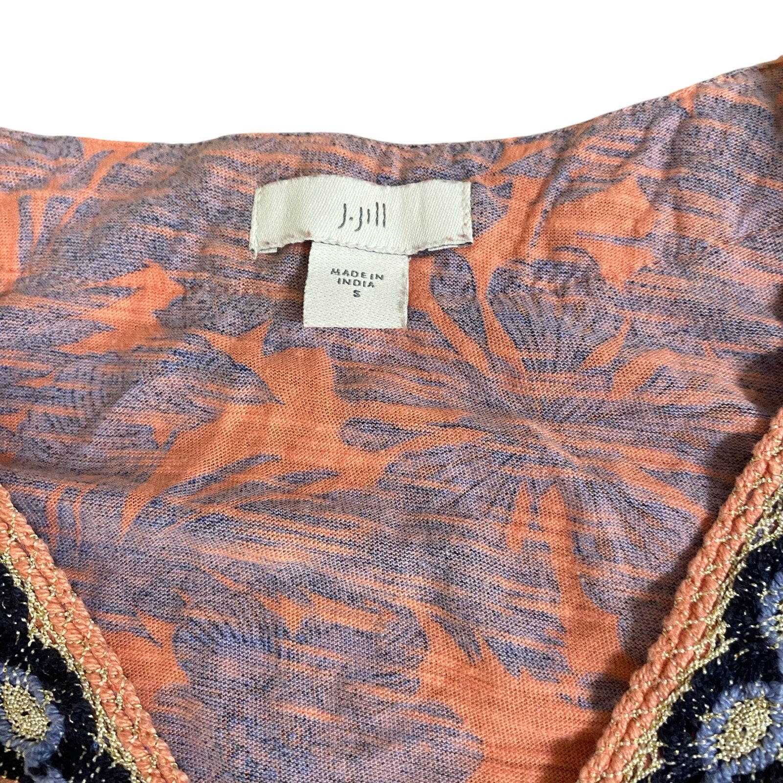 J.Jill blue pink purple floral quarter sleeve tunic shirt SIZE S
