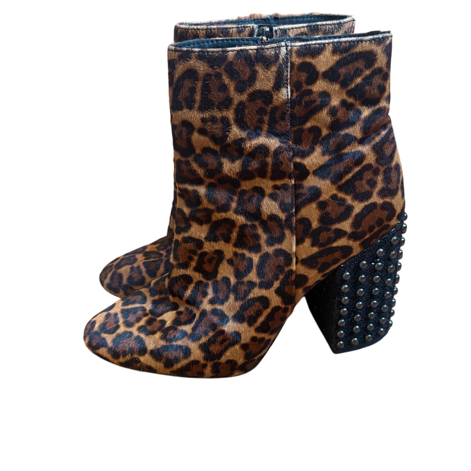 Jessica Simpson leather cheetah print studded heel booties SIZE 8.5