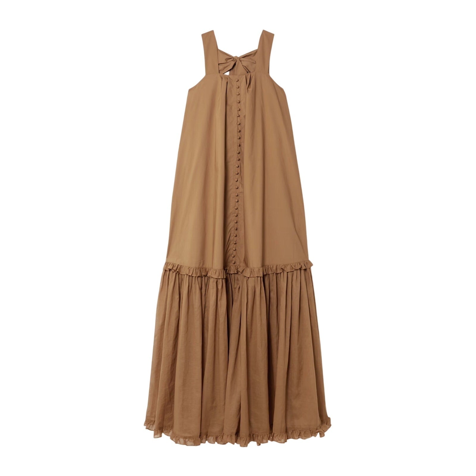Joslin tan drop waist button up open back tank organic cotton maxi dress SIZE 8