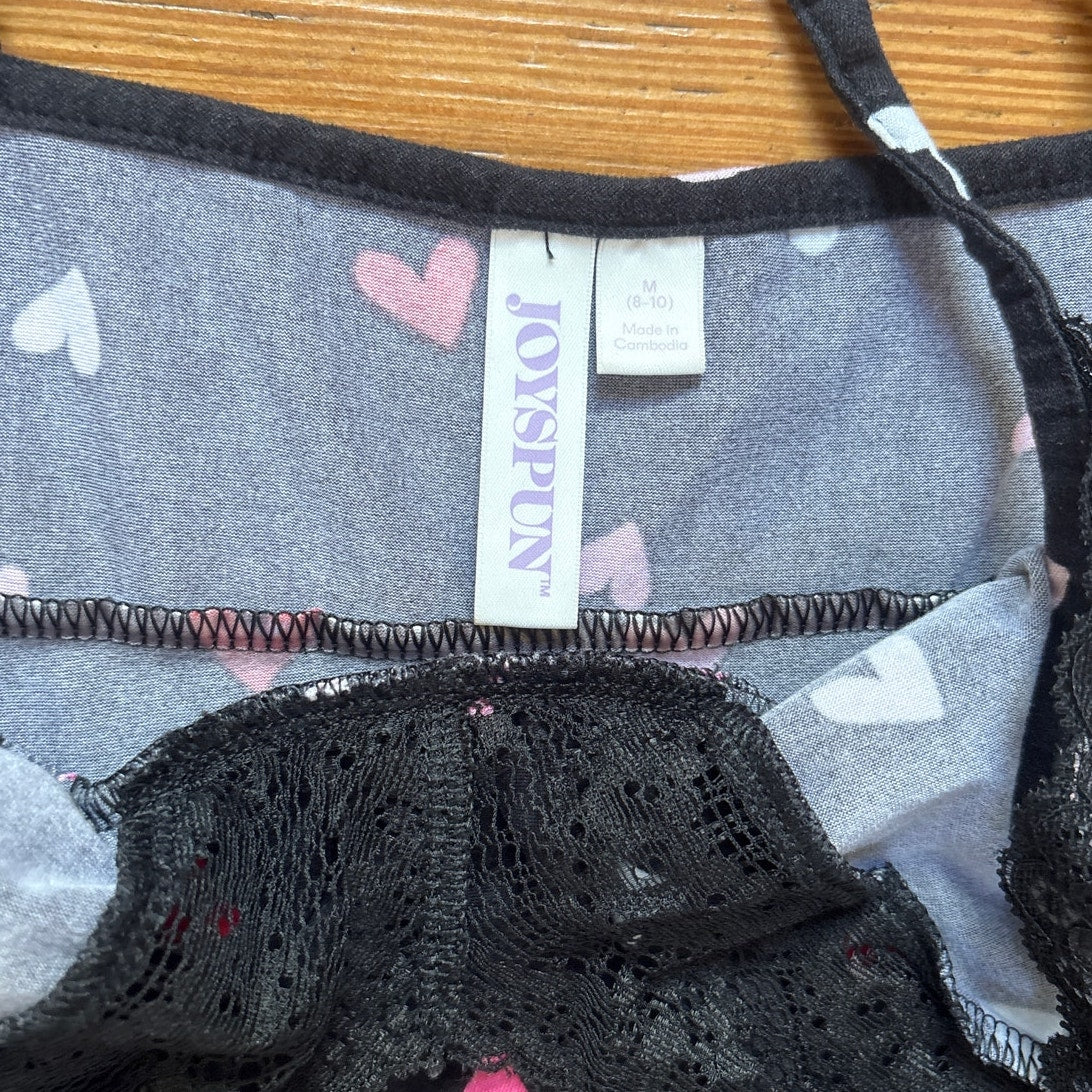 Joyspun black heart lace accent adjustable sleep dress SIZE M