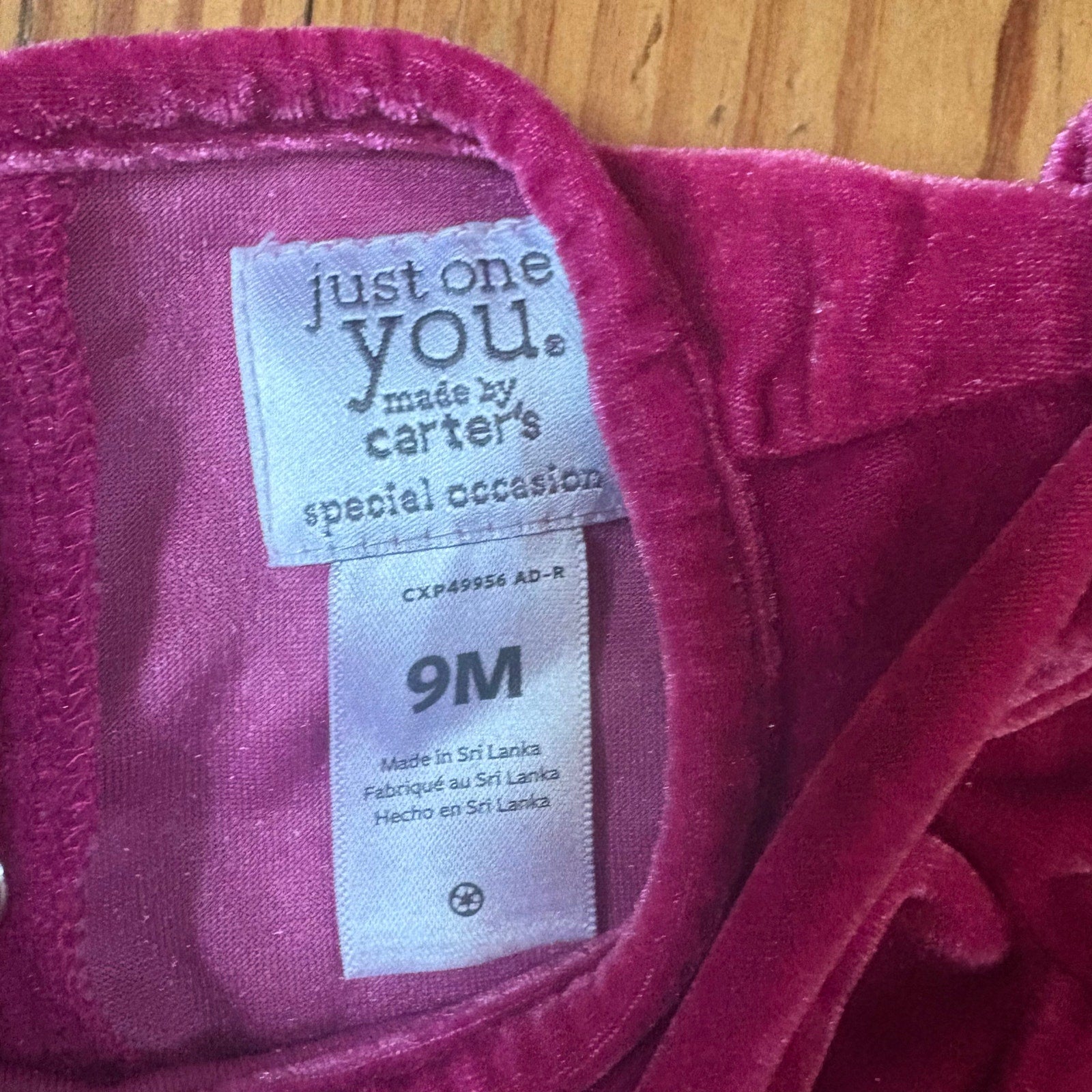 Just One You Carter's pink velvet long sleeve bow one piece romper SIZE 9M