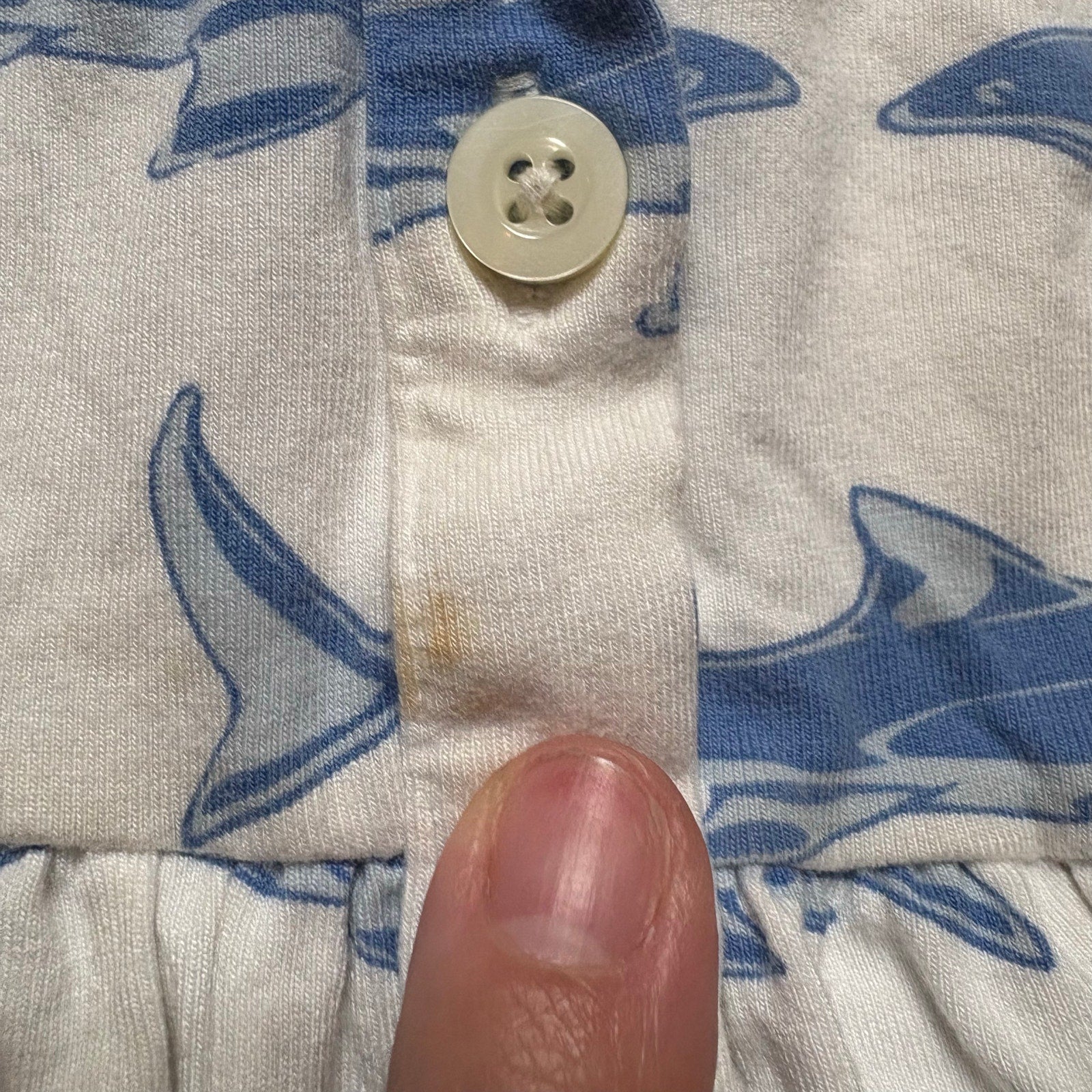 Item: Kate Quinn bamboo ivory blue shark long sleeve bodysuit dress SIZE 2T