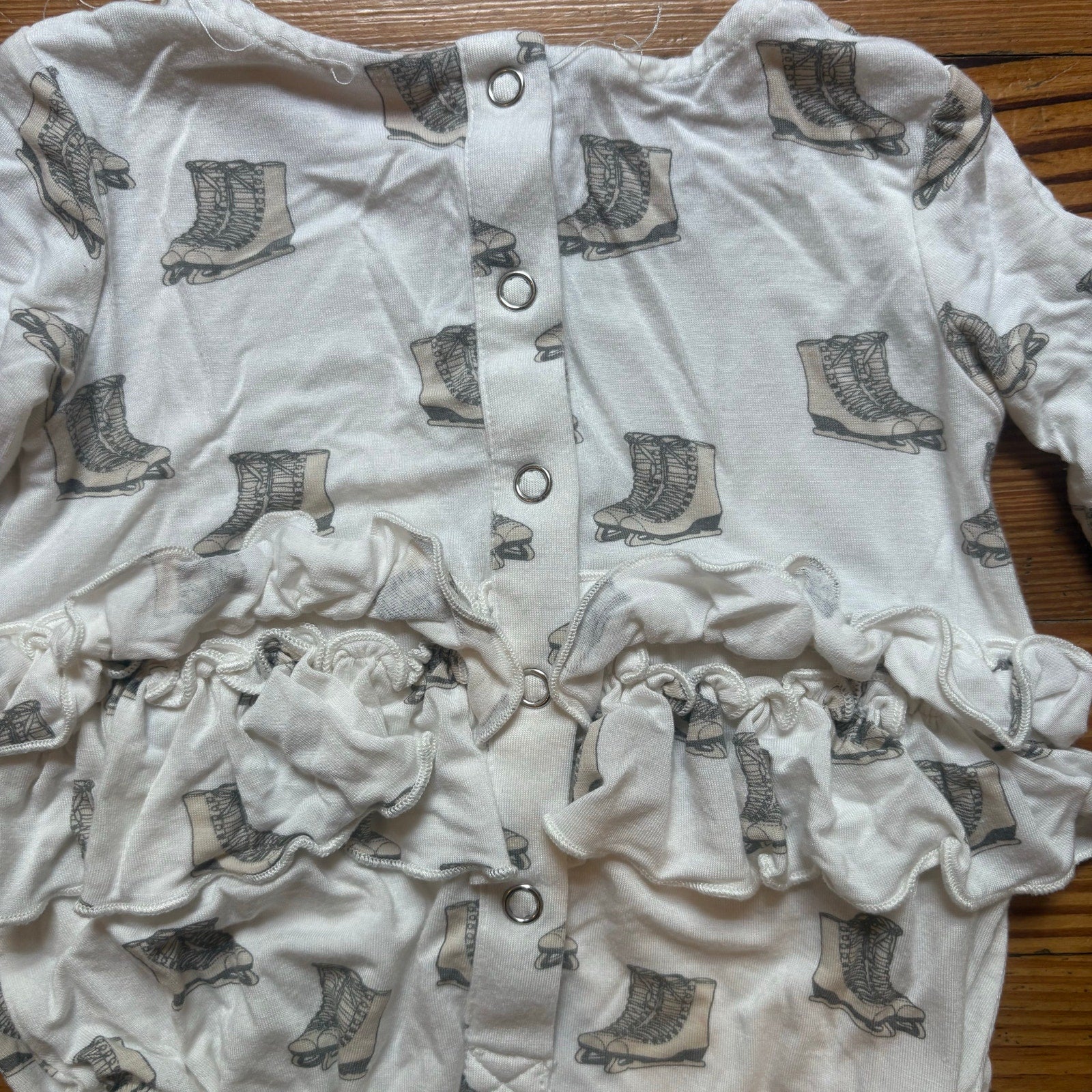 Item: Kate Quinn white gray ice skating long sleeve ruffle butt bodysuit SIZE 3-6M