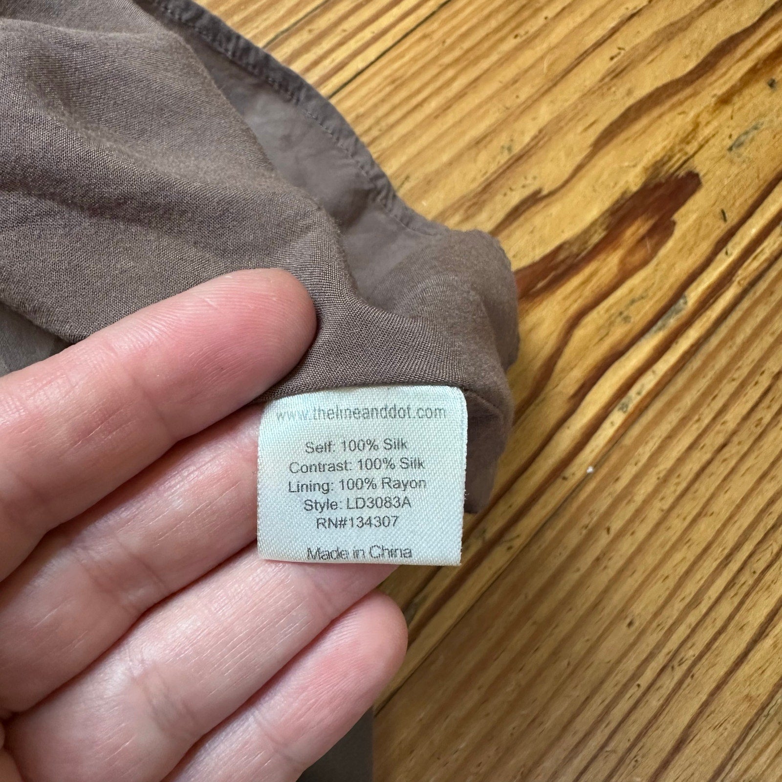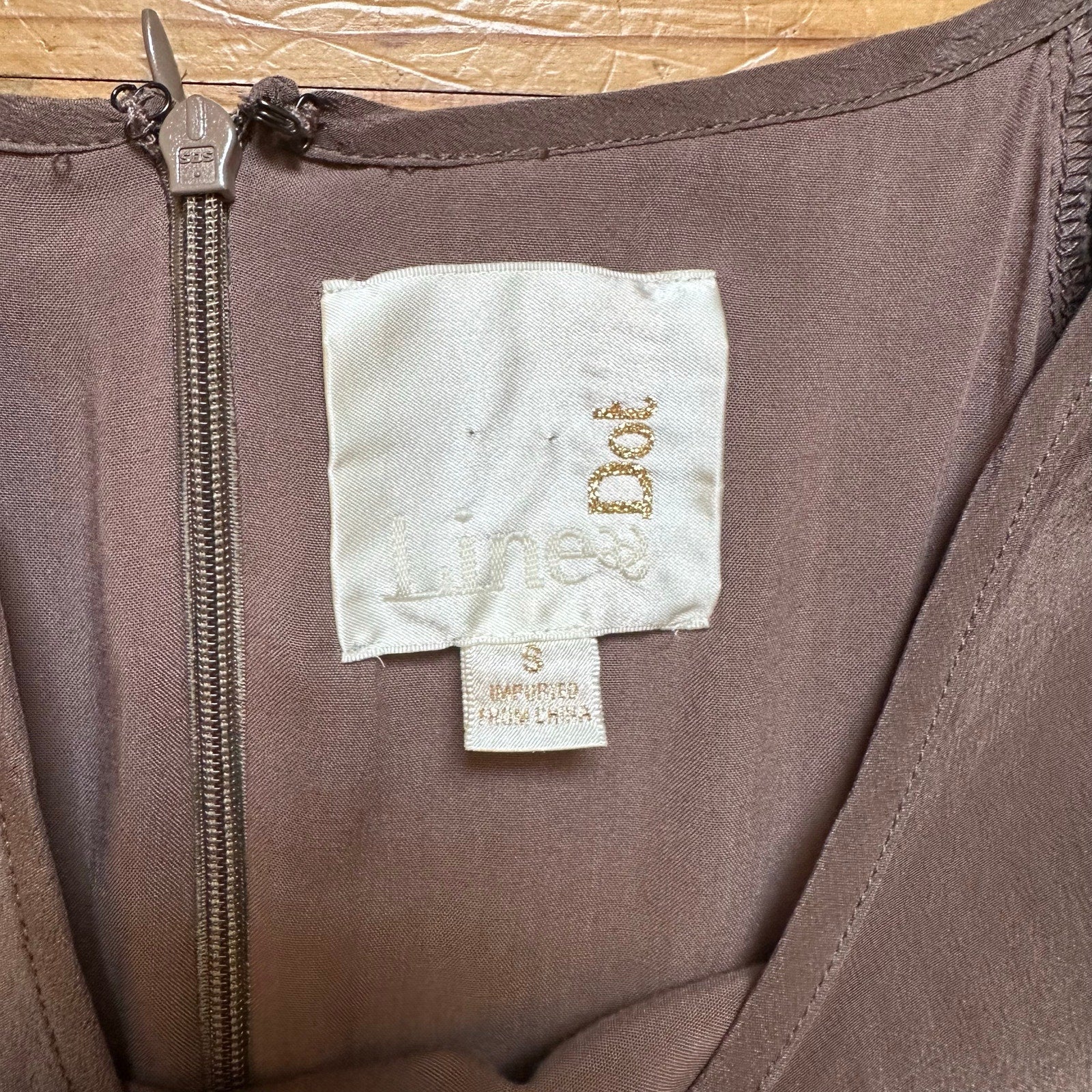 Line & Dot brown black sequin bird applique sheer sleeve silk dress SIZE S