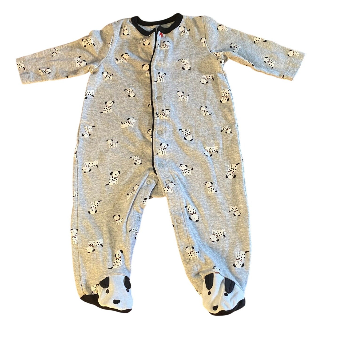 Little Me light gray Dalmatian long sleeve footed snap one piece SIZE 6M