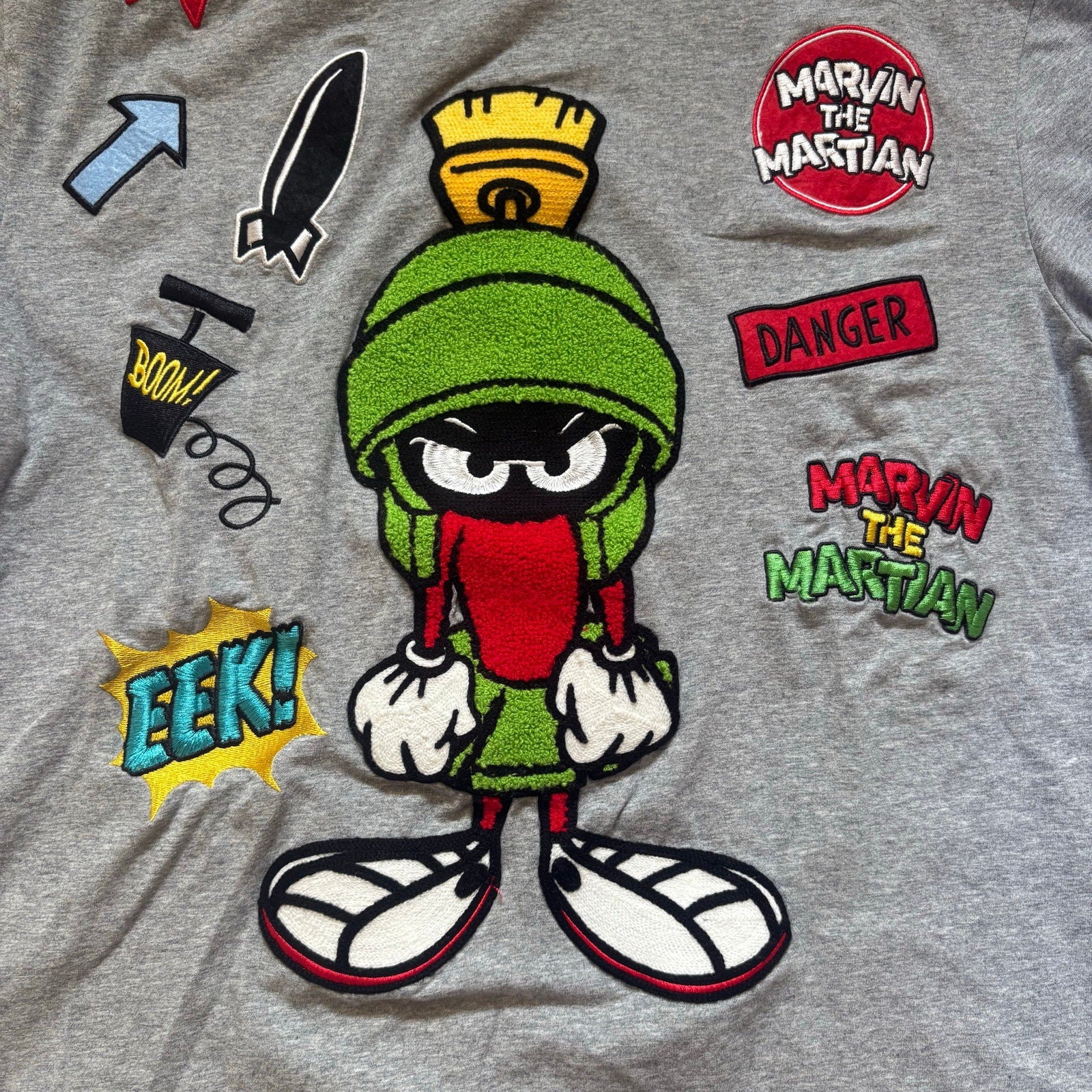Looney Tunes Marvin Martian textured patch gray short sleeve shirt SIZE M