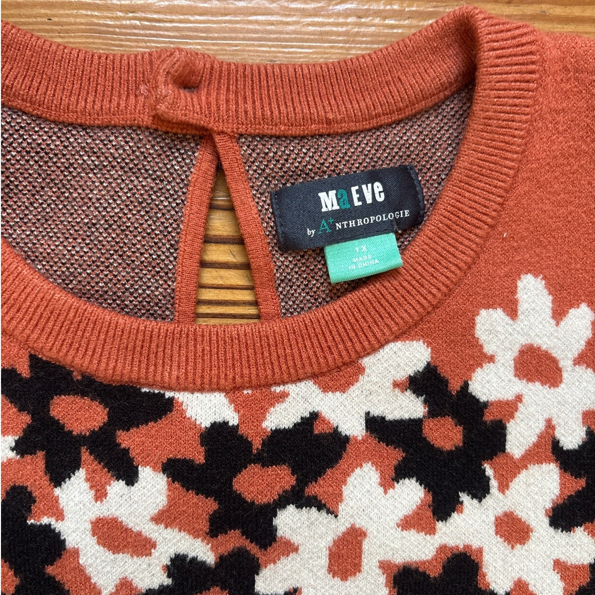 Maeve Anthropologie Harmon jacquard floral knit short sleeve sweater top SIZE 1X