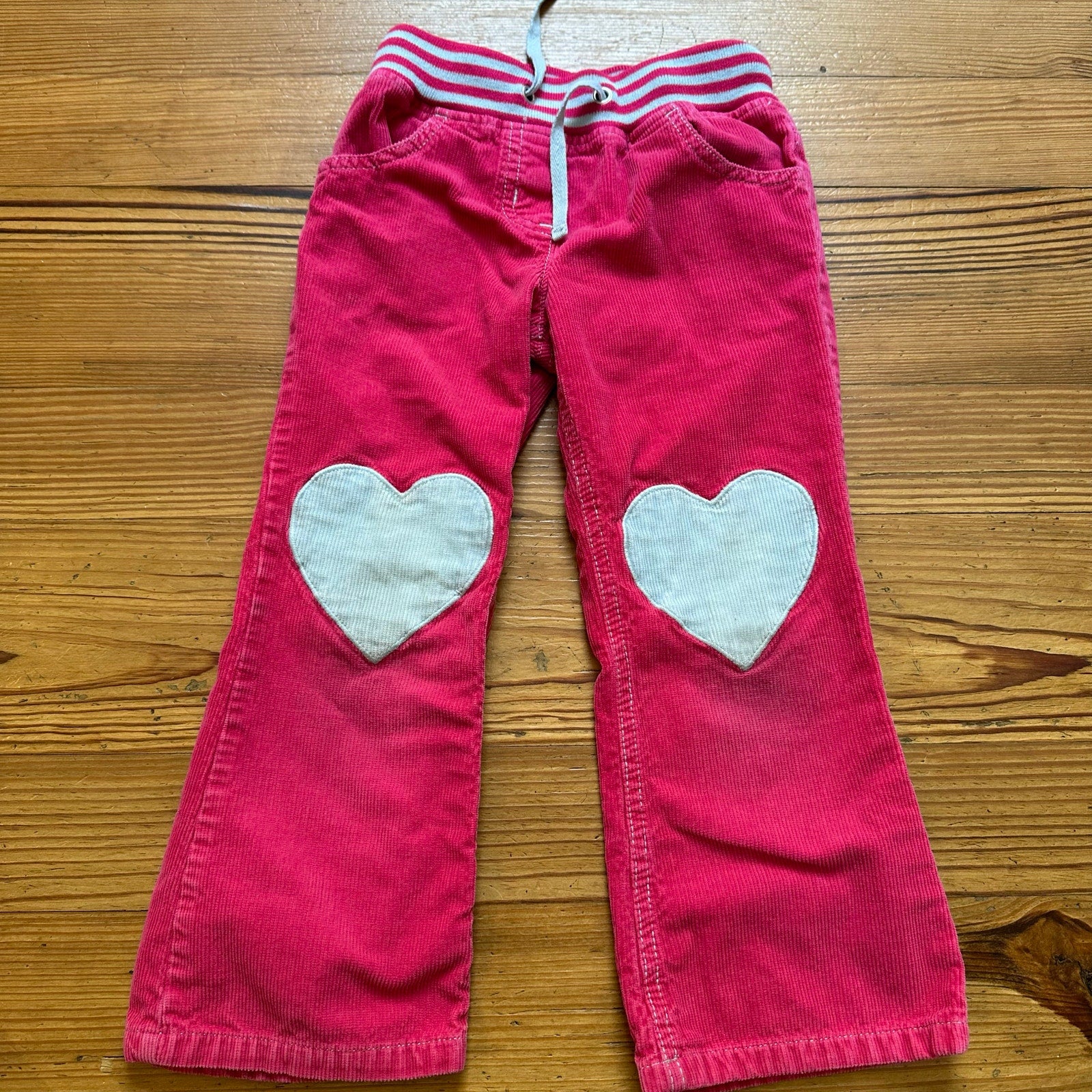 Mini Boden pink gray heart knee corduroy elastic waist flare pants SIZE 4