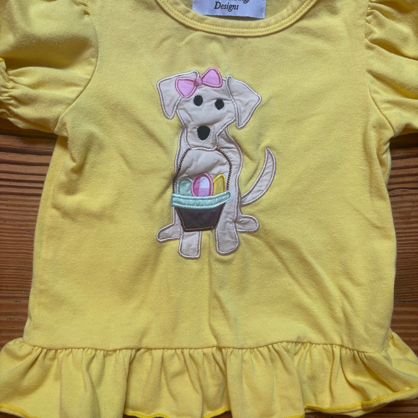 MK Clothing Designs yellow dog Easter eggs basket short sleeve girls top SIZE 2T