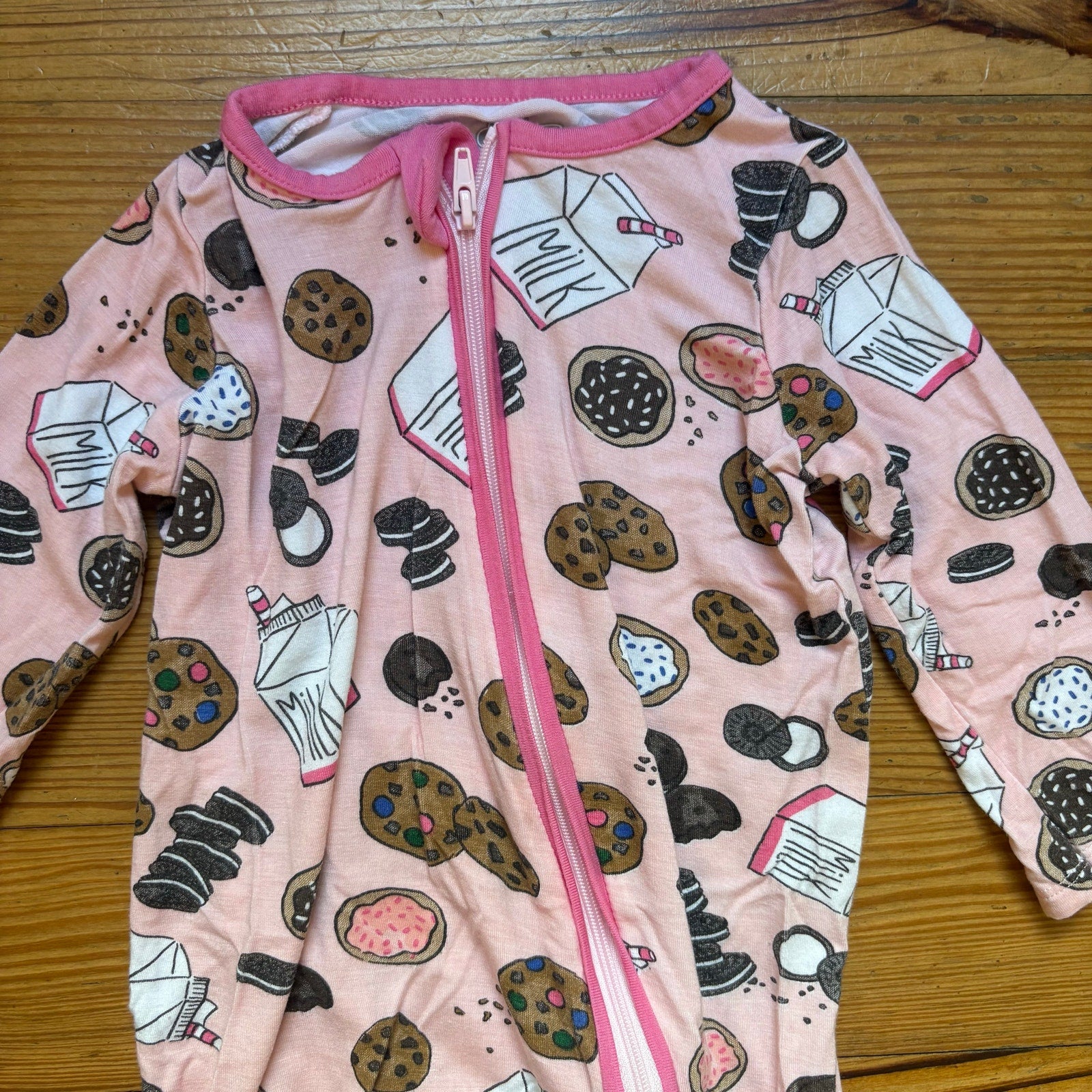 Mud Pie pink milk cookies full zip bamboo long sleeve footie pajamas SIZE 6-9M