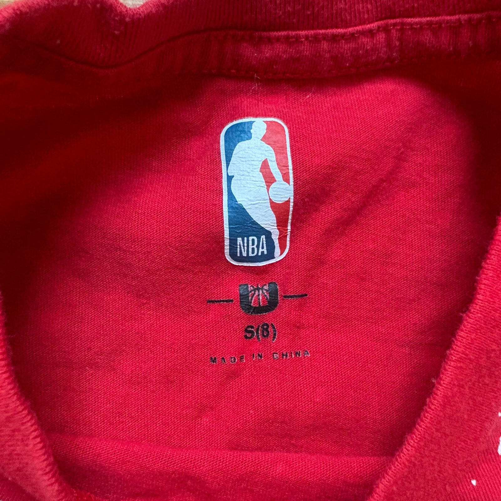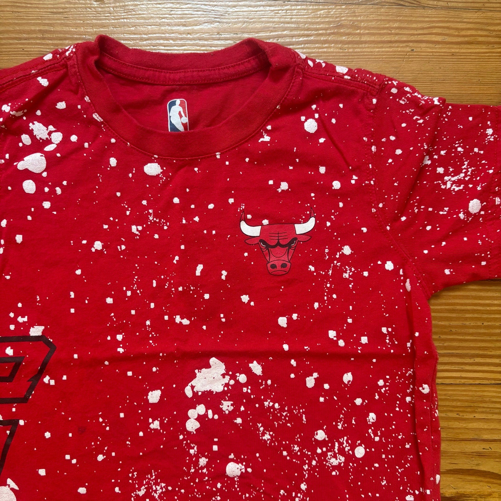 NBA Chicago Bulls red white splatter paint short sleeve boys shirt SIZE S