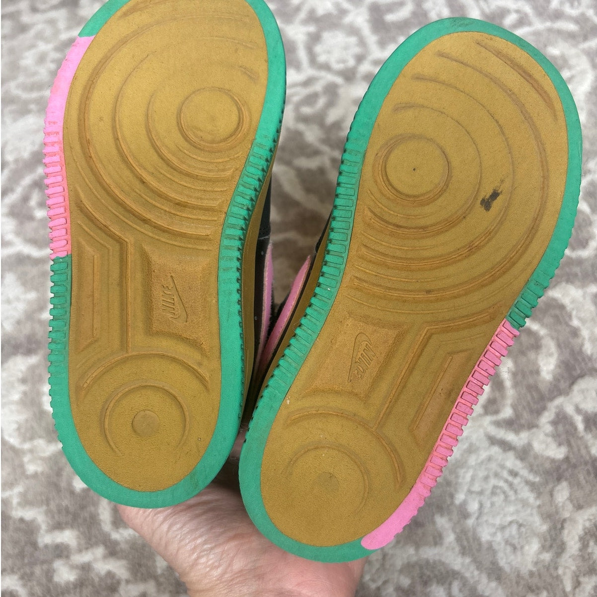 Item: Nike Air Force 1 Low LV8 black color block easy on youth sneakers SIZE 12